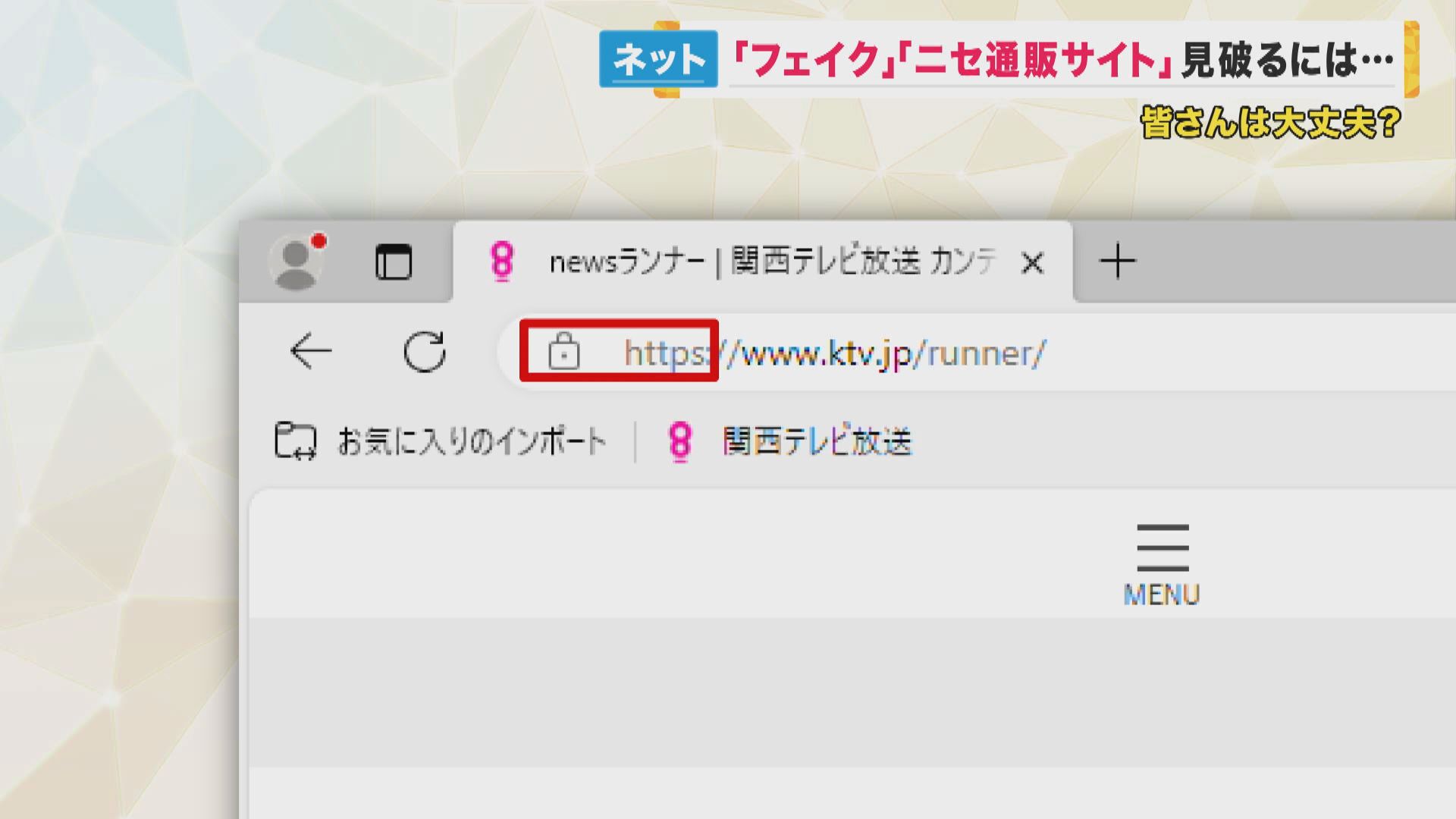 URLの「s」と鍵マークの表示は、暗号化されていることを示すもので、表示がないサイトは詐欺である可能性が非常に高いとのことです。