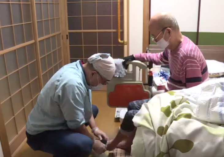 そう話した大辻さんが午後9時頃に訪れたのは、夜間の訪問介護を毎日利用している80代の夫婦の自宅です。82歳の夫は脳梗塞の影響で左半身にまひがあり、81歳の妻が世話をしています。