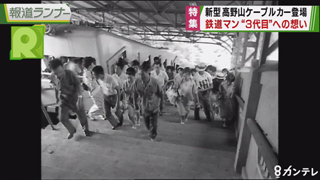 昭和39年、東京オリンピックの年に2両編成の3代目の車両が登場しました。上田さんはそのころ南海電鉄に入社し、40年以上、このケーブルカーの設備の補修に携わりました。