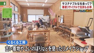 さらに、古い着物や、町のお祭りで使った鯉のぼりをリメイクして販売するお店もあり、そもそもゴミとして出さない取組も行っています。