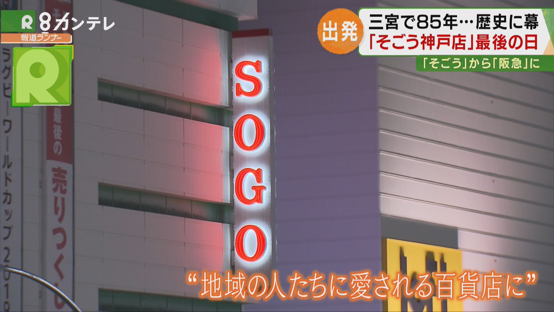 神戸の中心・三宮で、85年にわたり営業を続けてきたそごう神戸店。10月から「神戸阪急」に生まれ変わるのを前に、最後の営業の日を迎えました。