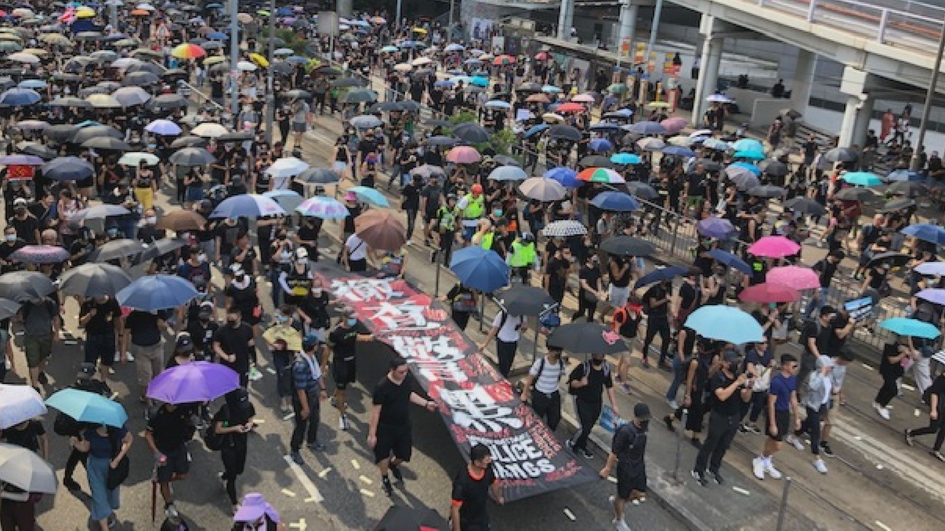 一方で、市民の憎悪が向く警察は変わらず強硬だ。デモ隊を取り押さえる際、倒して首のあたりを膝で抑え体重をかけるような方法もとる。催涙弾はもちろん放水車でしびれる成分入りの青色の水を撒きデモ隊を追い払う。先日のデモでは青い水がイスラム教のモスクを汚してしまい、行政長官が謝罪に訪れる事態となった。