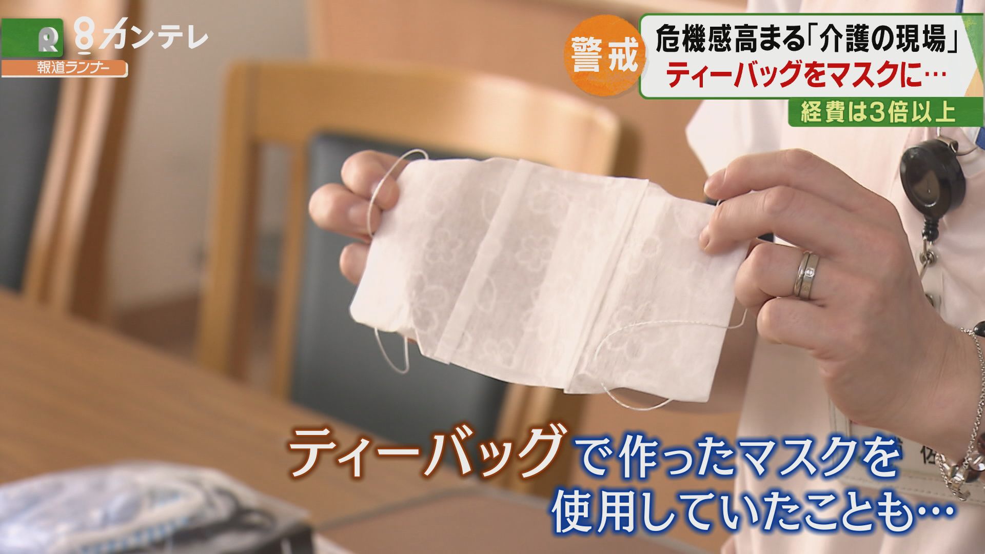 「すごく密着しての介助になっていて、食事介助をするときに食べ物や飲み物を吐いたりするので(マスクを)常に交換はしないといけないんです。(通常だったら)1日にスタッフ8人ぐらいが出入りするので、マスクを1ヵ月に約500枚使うんですよ」