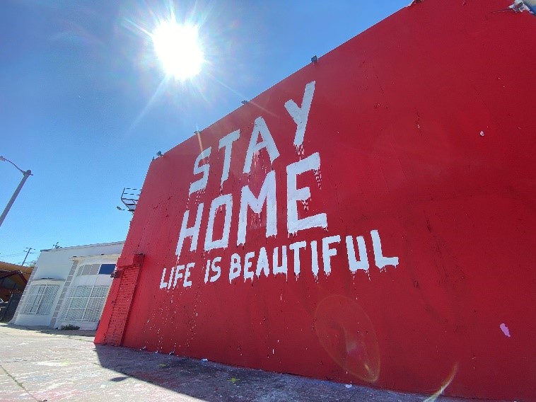 【自宅待機を呼び掛ける、ロサンゼルス市内のウォールアート】