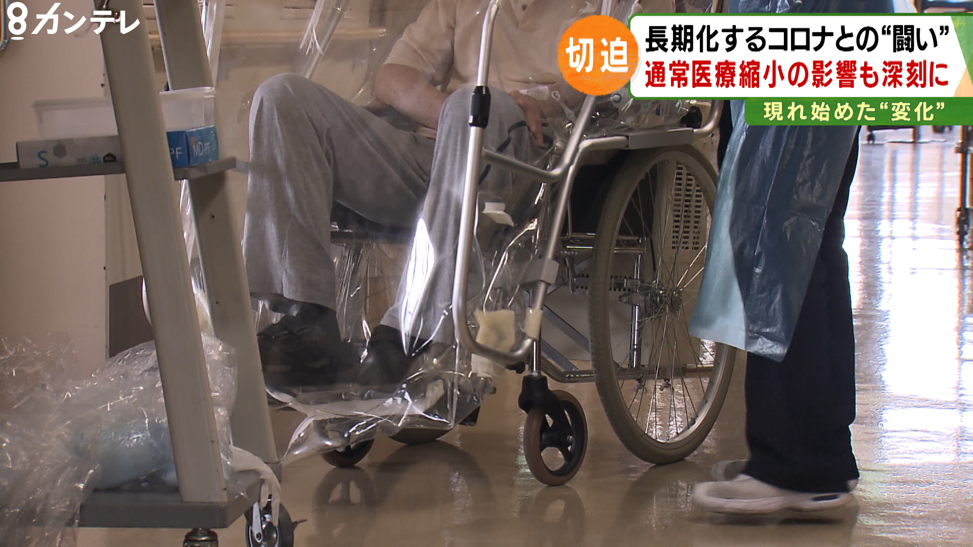 「すごい(患者が)増えたなと思います。第一波から一回が~んと減った。病棟的にも(使われる)病床が減ったが、またすぐに埋まるぐらいに増えましたし、退院したらすぐに入院してくる感じで、間がなくずっと患者さんがいるなという感じです。いつまで続くのかが分からないので不安ですね」