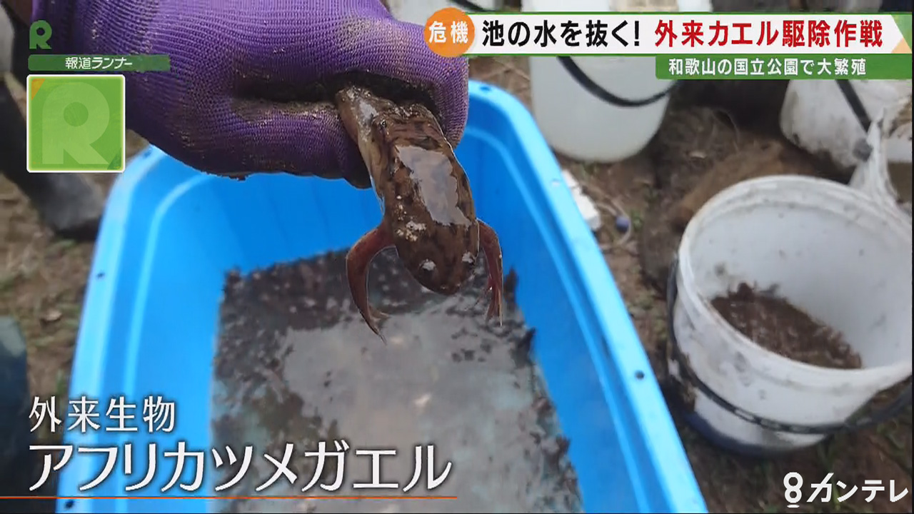 豊かな自然に囲まれた和歌山県田辺市の国立公園で、外来種の「アフリカツメガエル」が大繁殖。