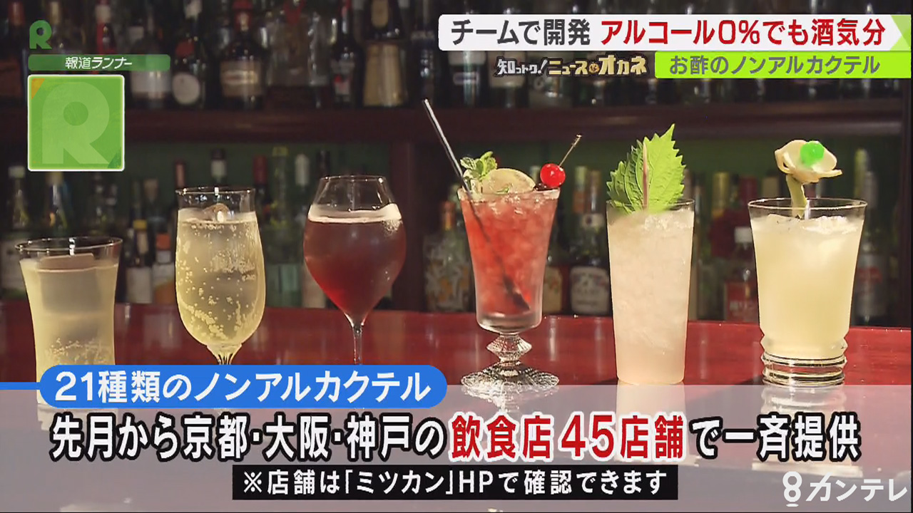 このお酢のノンアルカクテルは、9月から京阪神の飲食店45店舗で一斉提供されています。