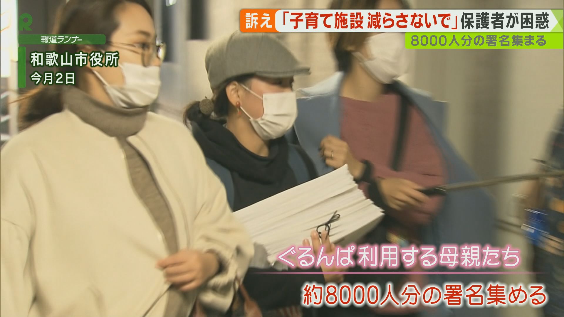 今月2日、「ぐるんぱ」を利用する母親たちは、今回の決定を考え直してほしいと8000人分の署名を集め、和歌山市へ届けました。