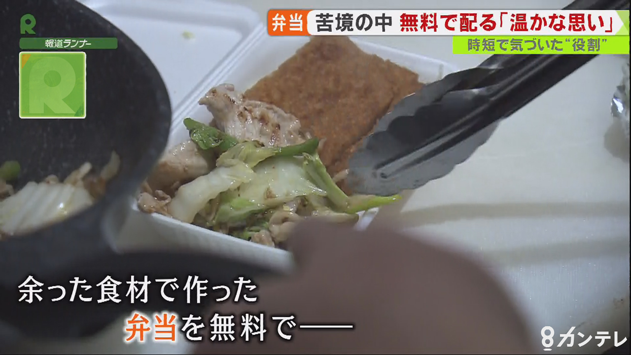 時短営業中、店で余った食材を使って弁当を作り、無料で配っているのです。