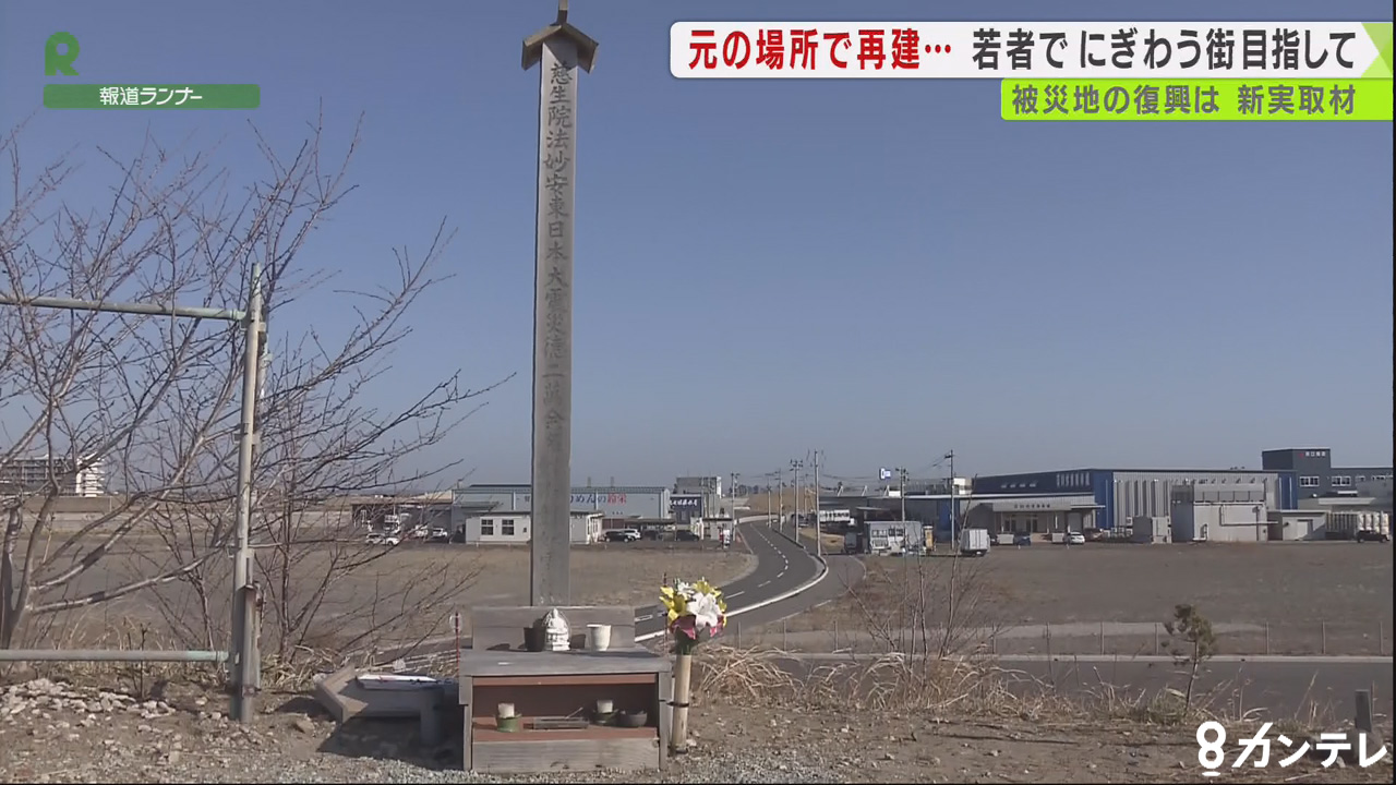 「元の閖上地区の高さからは、5メートルほどかさ上げされています。ここに住宅などが立ち並ぶわけなんですけれども、そこに去年ようやくスーパーが入る施設がオープンました。ここで生活をスタートという方の心の後押しになっているようです」