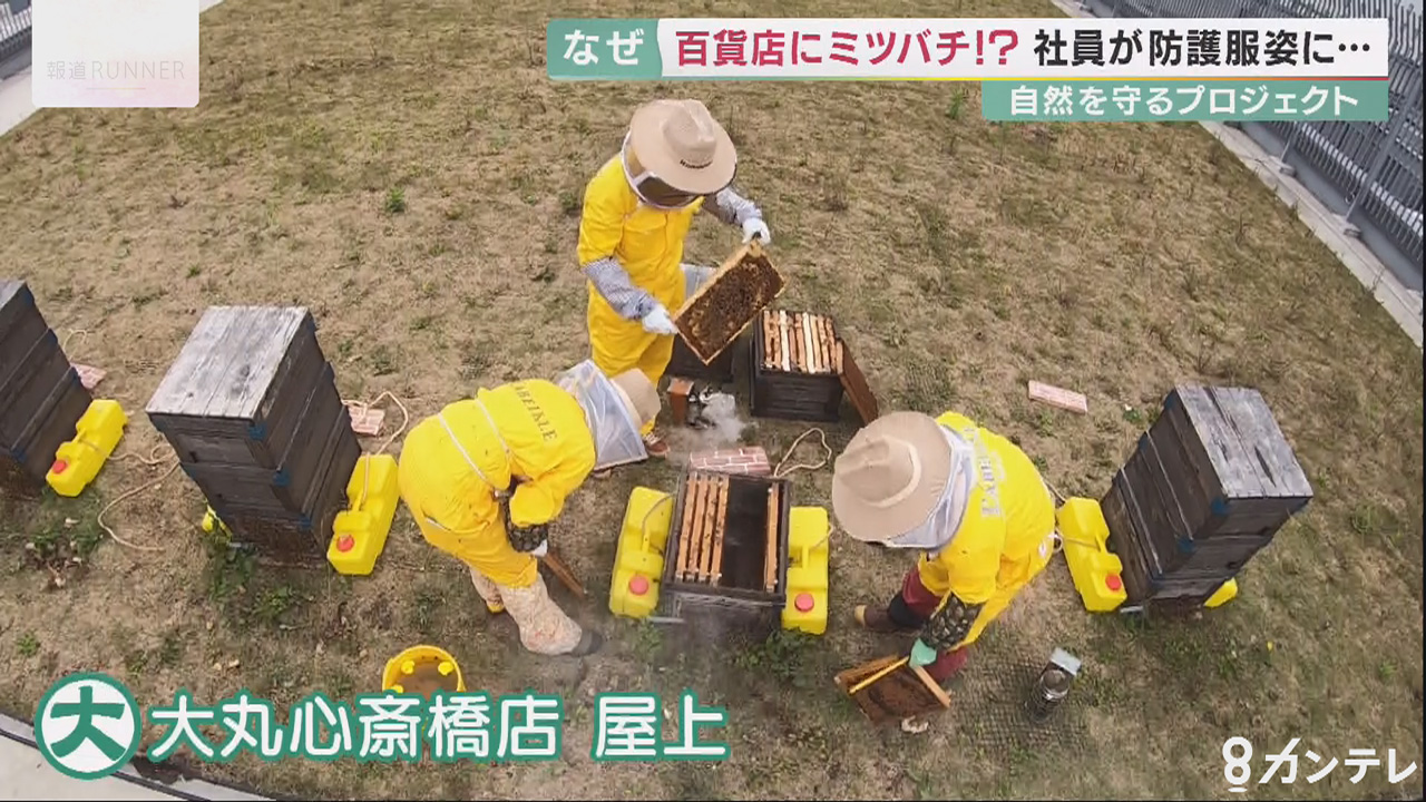 大丸心斎橋店では、ハチミツを最終的に200kg採る予定で、子供向けの体験イベントなども今後企画するということです。