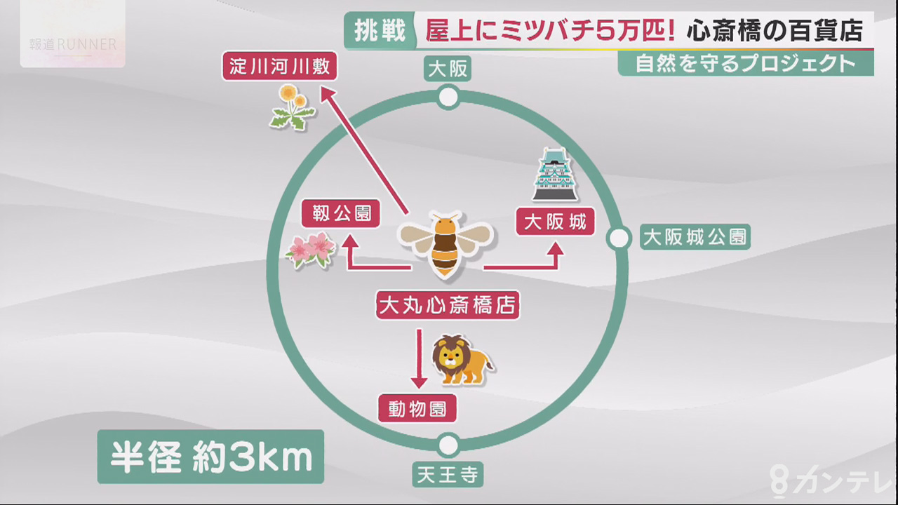 今年3月から、約5万匹のミツバチを育てる「心斎橋はちみつプロジェクト」を始めました。