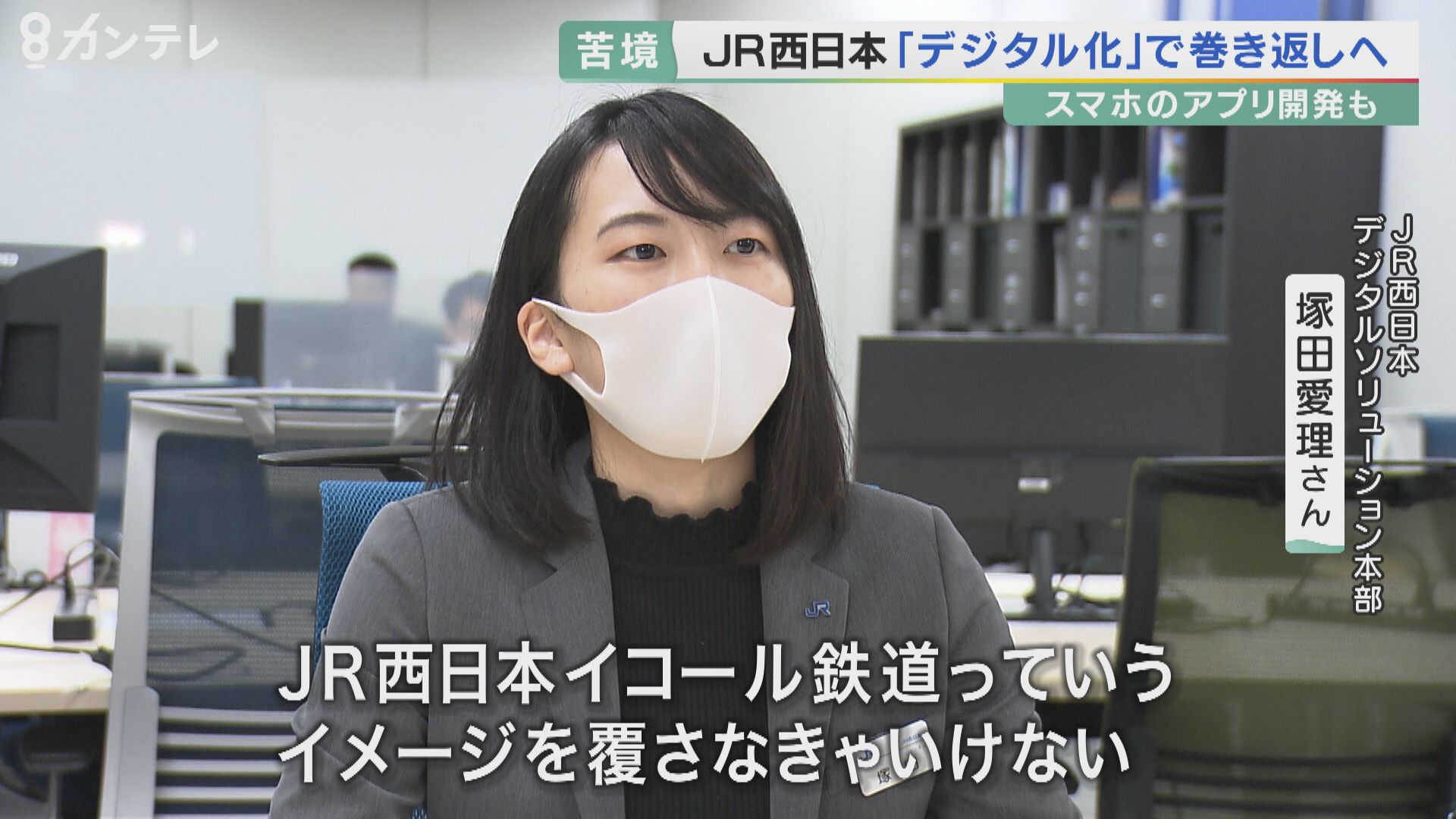 「私も週1でしか出勤してませんので、本当に在宅勤務っていうものも主流になってくると、”別に鉄道を利用して通勤しなくてもいいよね”って風潮になってくる。JR西日本イコール鉄道っていうイメージを覆さなきゃいけない、会社に変革をもたらさないといけない時代に来ている」