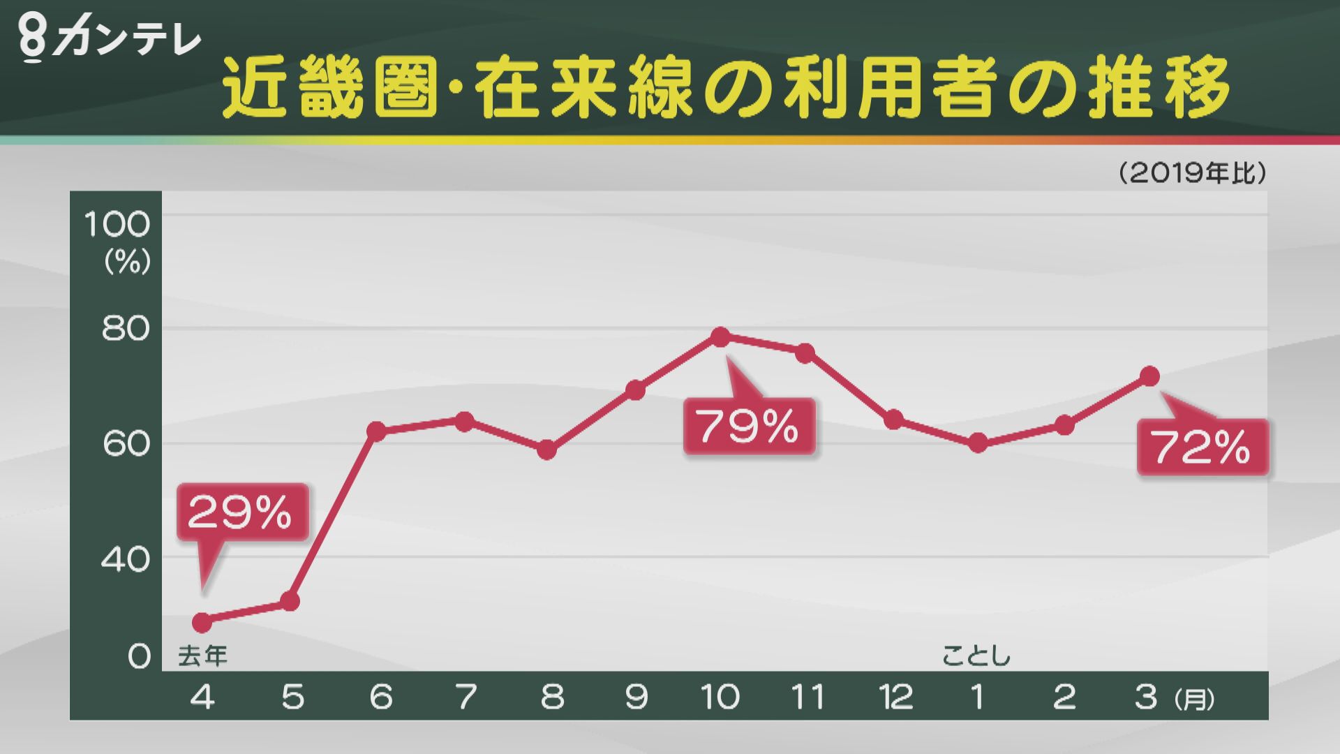 2020年4月以降、近畿圏の在来線の利用客は、通勤客などが減ったことで、例年の7割程度になっています。
