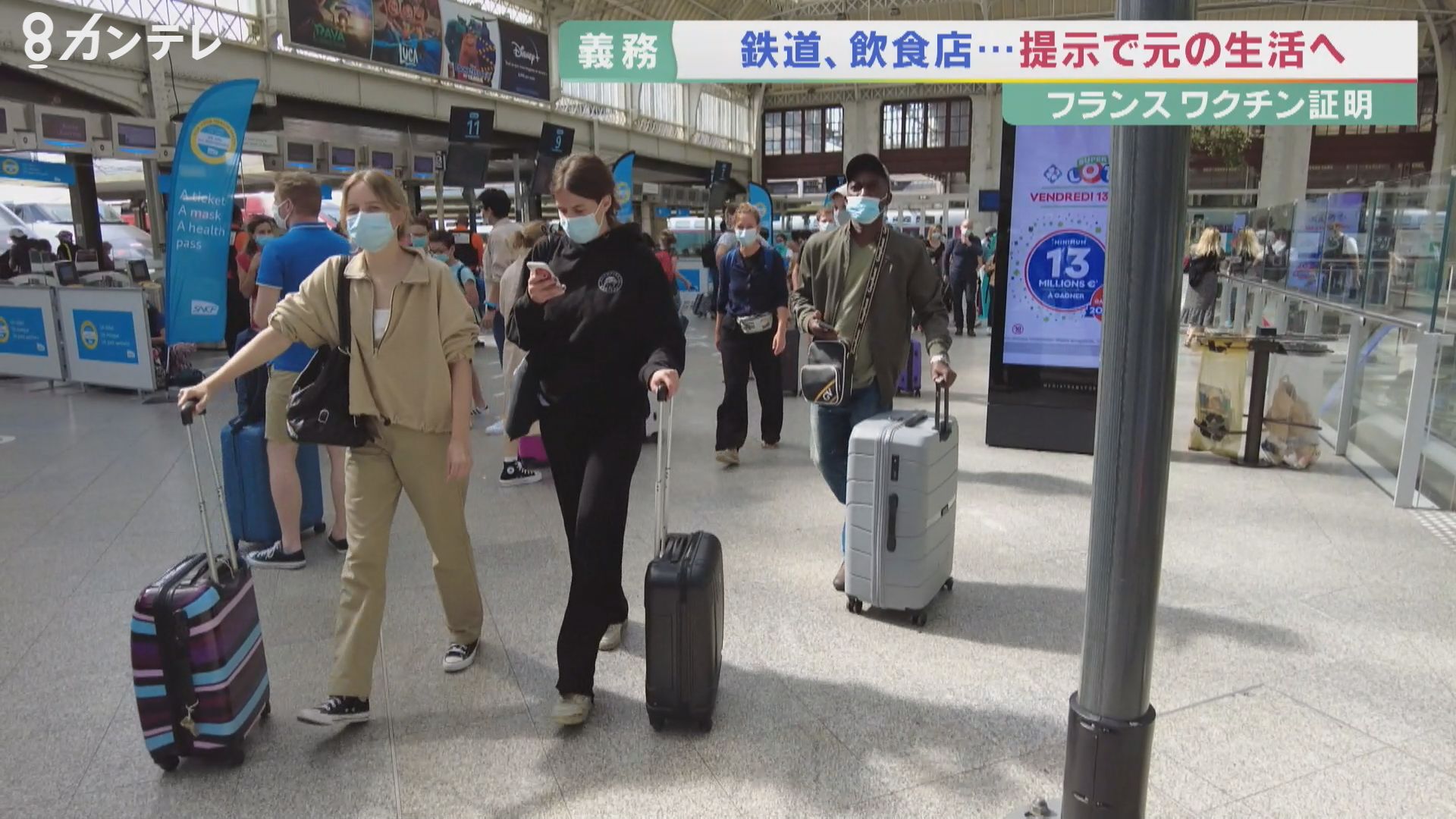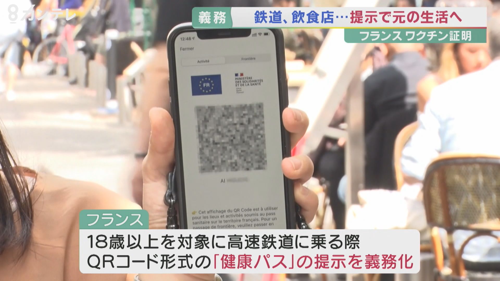 フランスでは、18歳以上の人を対象に高速鉄道を利用する際、「ワクチン接種済み」または、「検査陰性」のデータを記録したQRコードの「健康パス」の提示が義務づけられています。