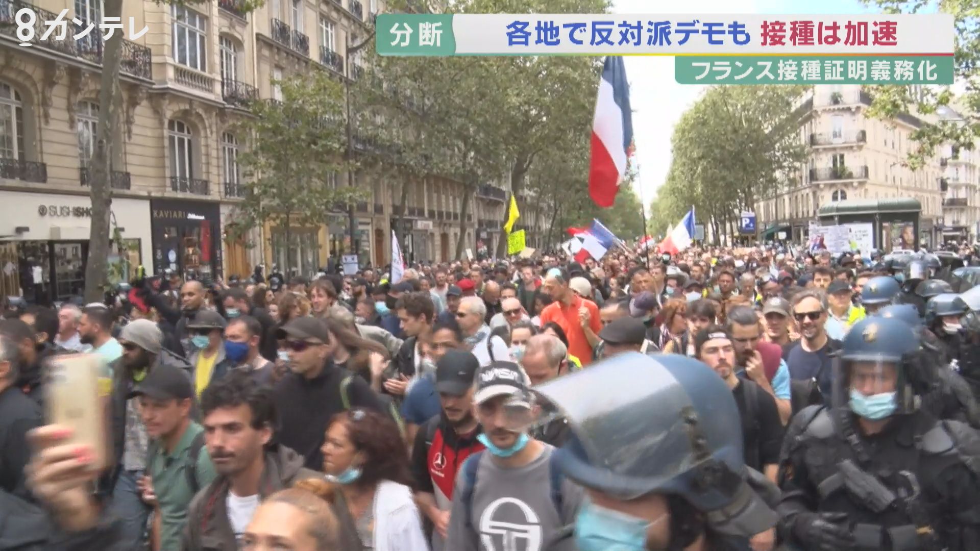 反発の声も多く、8月9日の義務化施行を前に、フランス全土で約23万7000人が抗議デモに参加しました。