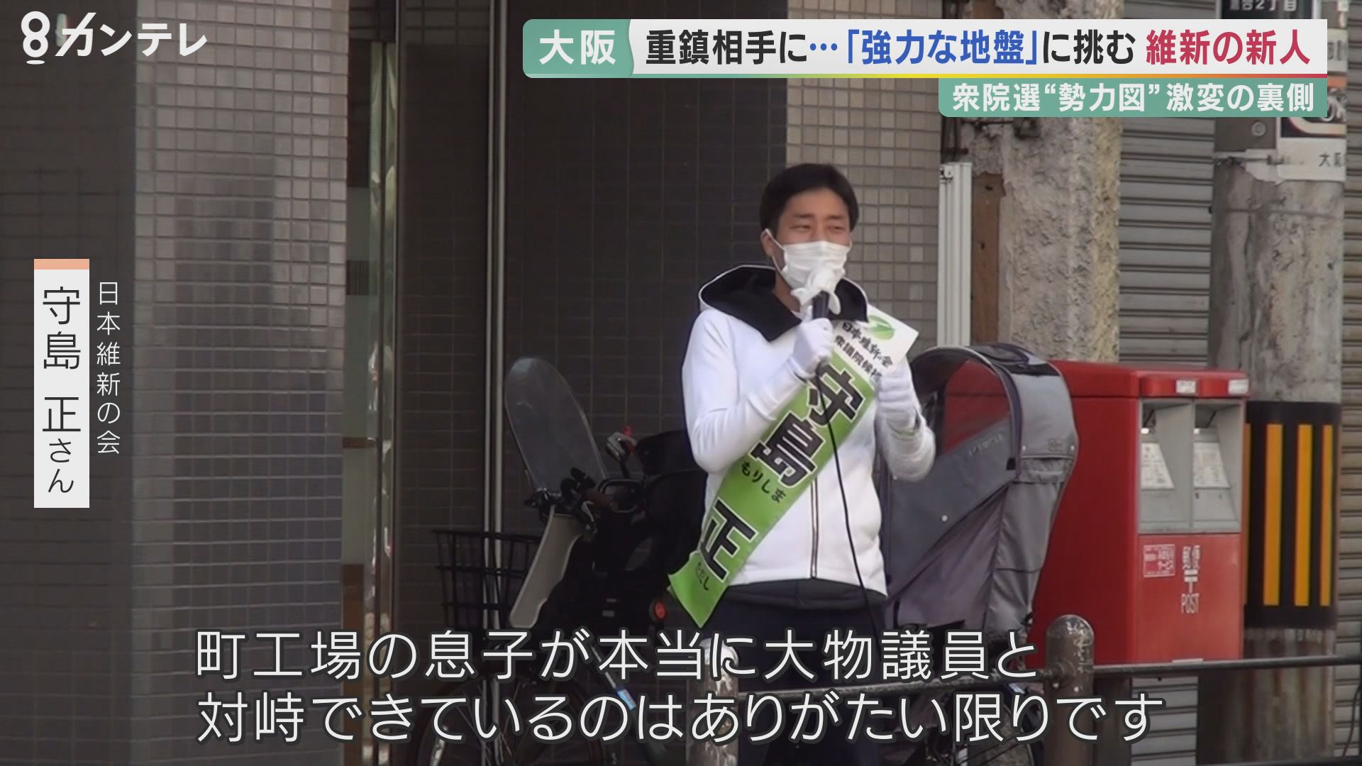 関西テレビは今回、大阪2区に立候補した日本維新の会の守島正さんと、大阪15区に立候補した自民党の加納陽之助さんを密着取材。
