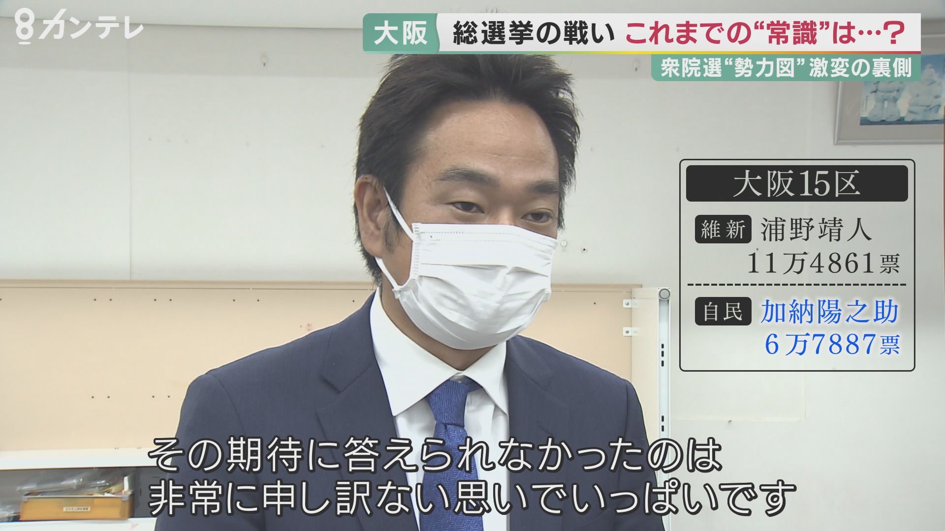 加納さんは、維新の前職、浦野靖人さんに5万票近い差を付けられて敗北。