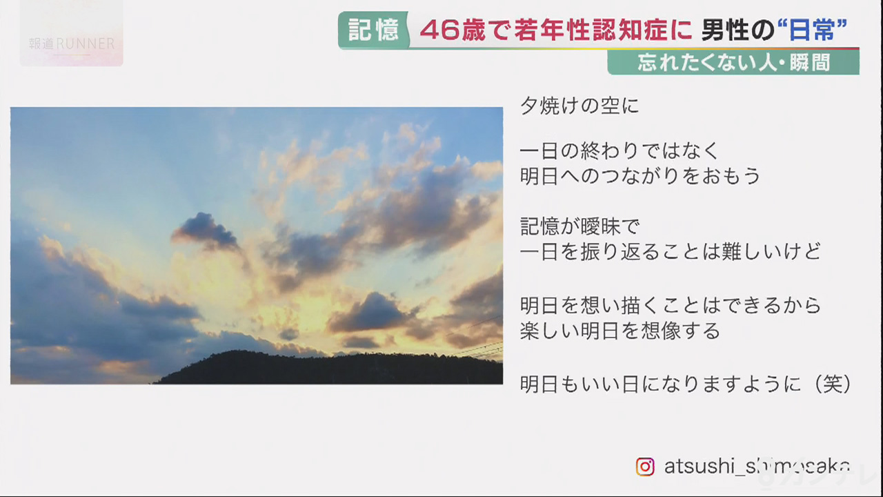 「写真を通じて人に感動を与えたりとか、自分が見える認知症の世界を知っていただく機会だったり、写真を通じてこの先何かやって行けたらなって気持ちがある。それが今の自分の夢かもしれません」