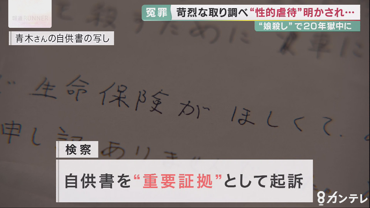 否認する気力を失った青木さんは、刑事から誘導される形で、「保険金目的で犯行を計画した」とする“自供書”を書いてしまいました。