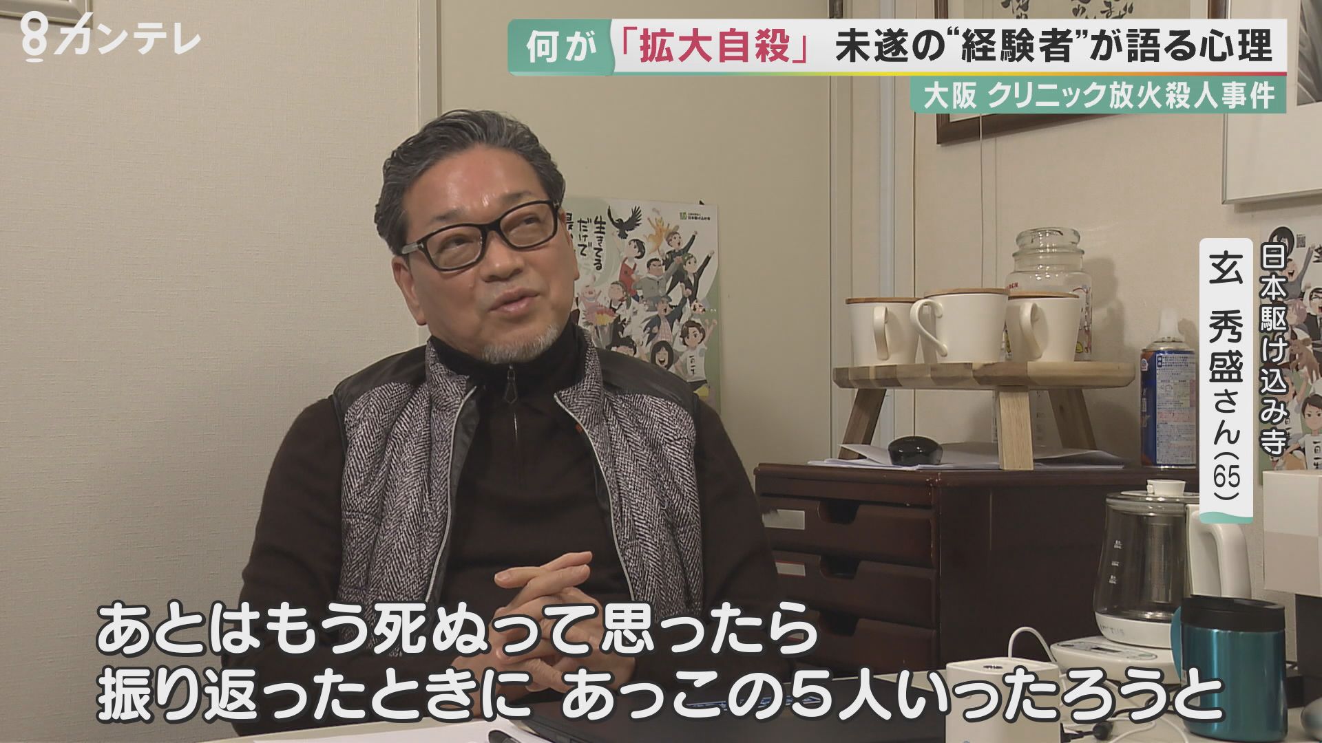 自らも拡大自殺未遂も起こし、20年間人生相談を行ってきた玄さんは、「誰も拒まずどんな話でも聞く」ことを大切にしています。