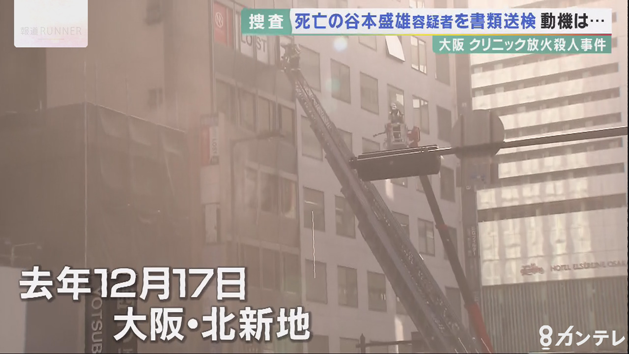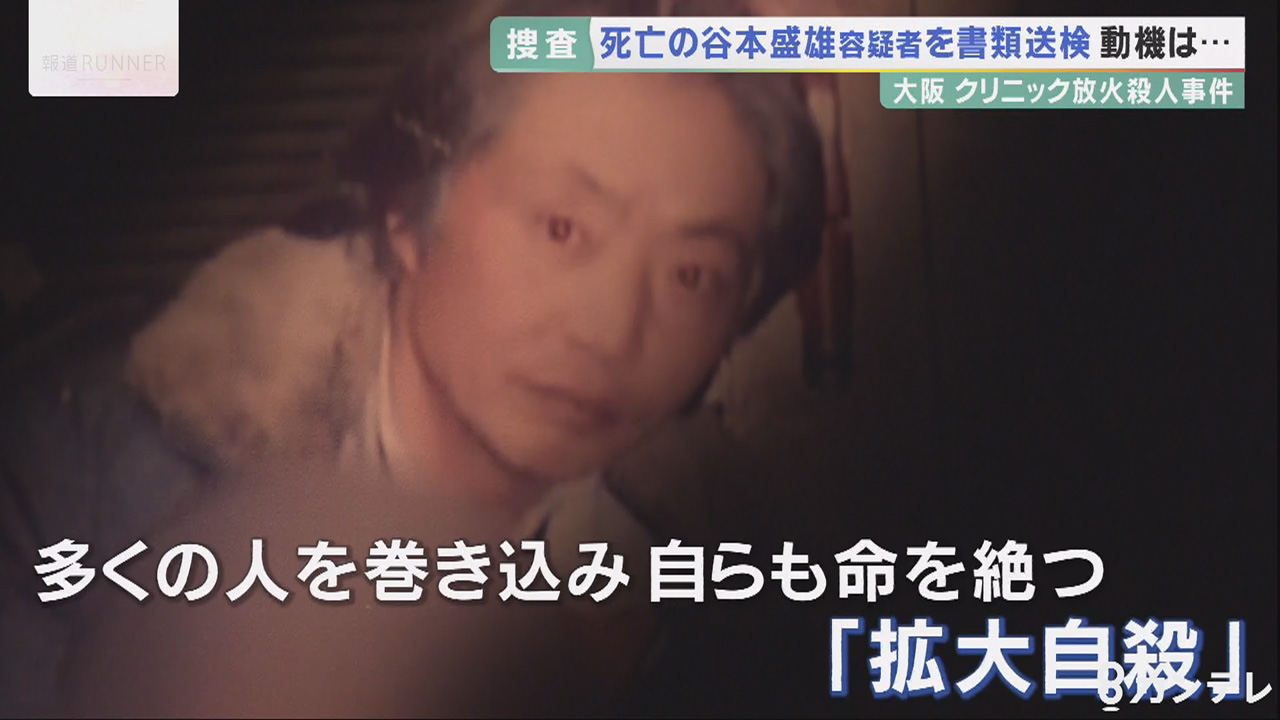 大阪・北新地の クリニック放火殺人事件で、警察は死亡した谷本盛雄容疑者を放火と殺害の疑いなどで16日、書類送検しました。