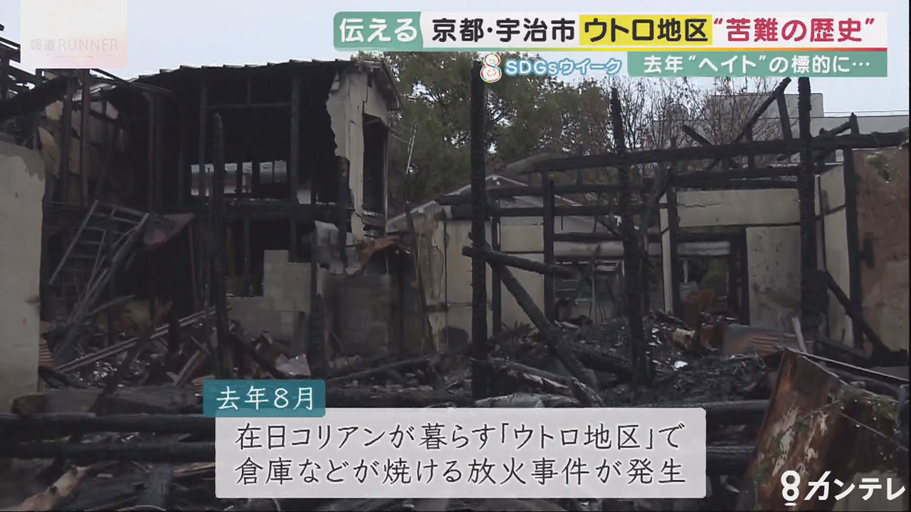 在日コリアンが暮らす「ウトロ地区」で、倉庫などが焼けた放火事件。