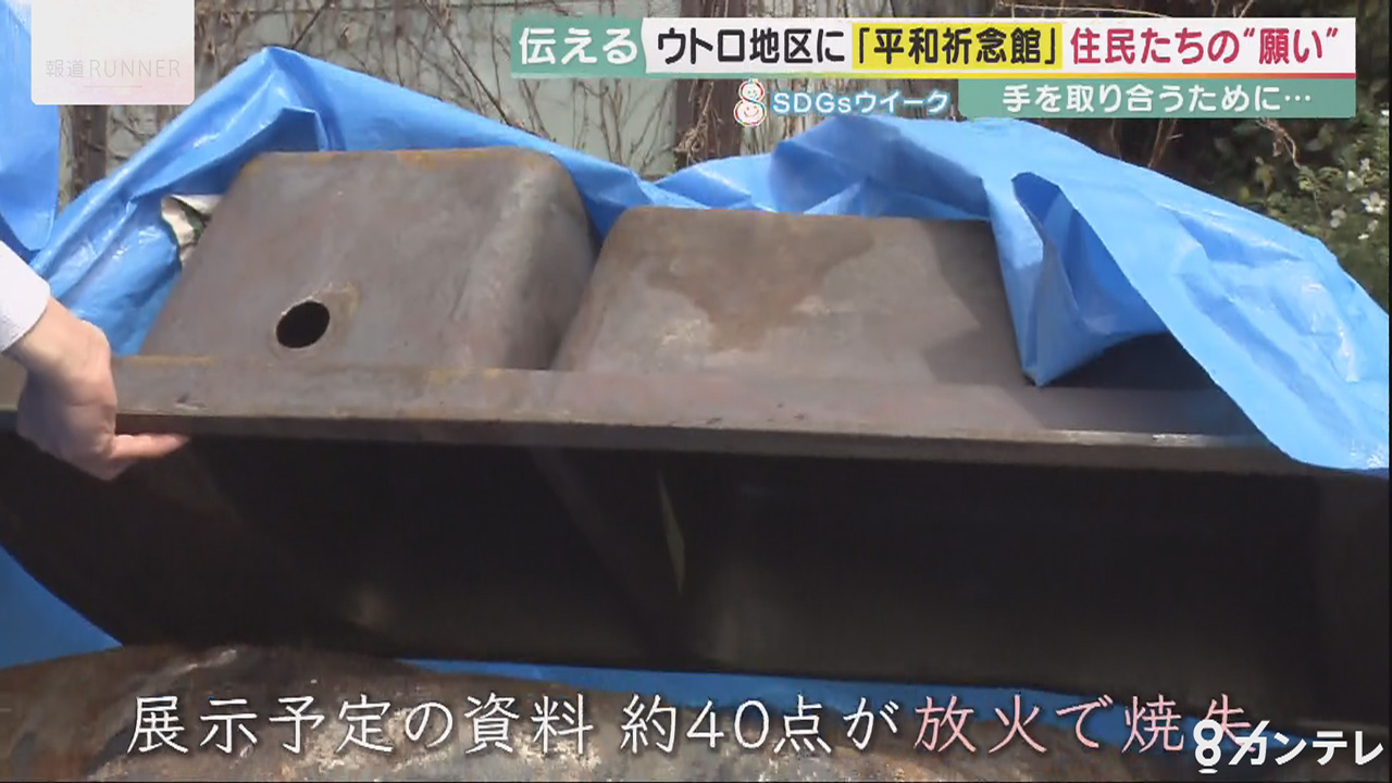 ブルーシートの下には、祈念館に展示する予定だった資料およそ40点が。