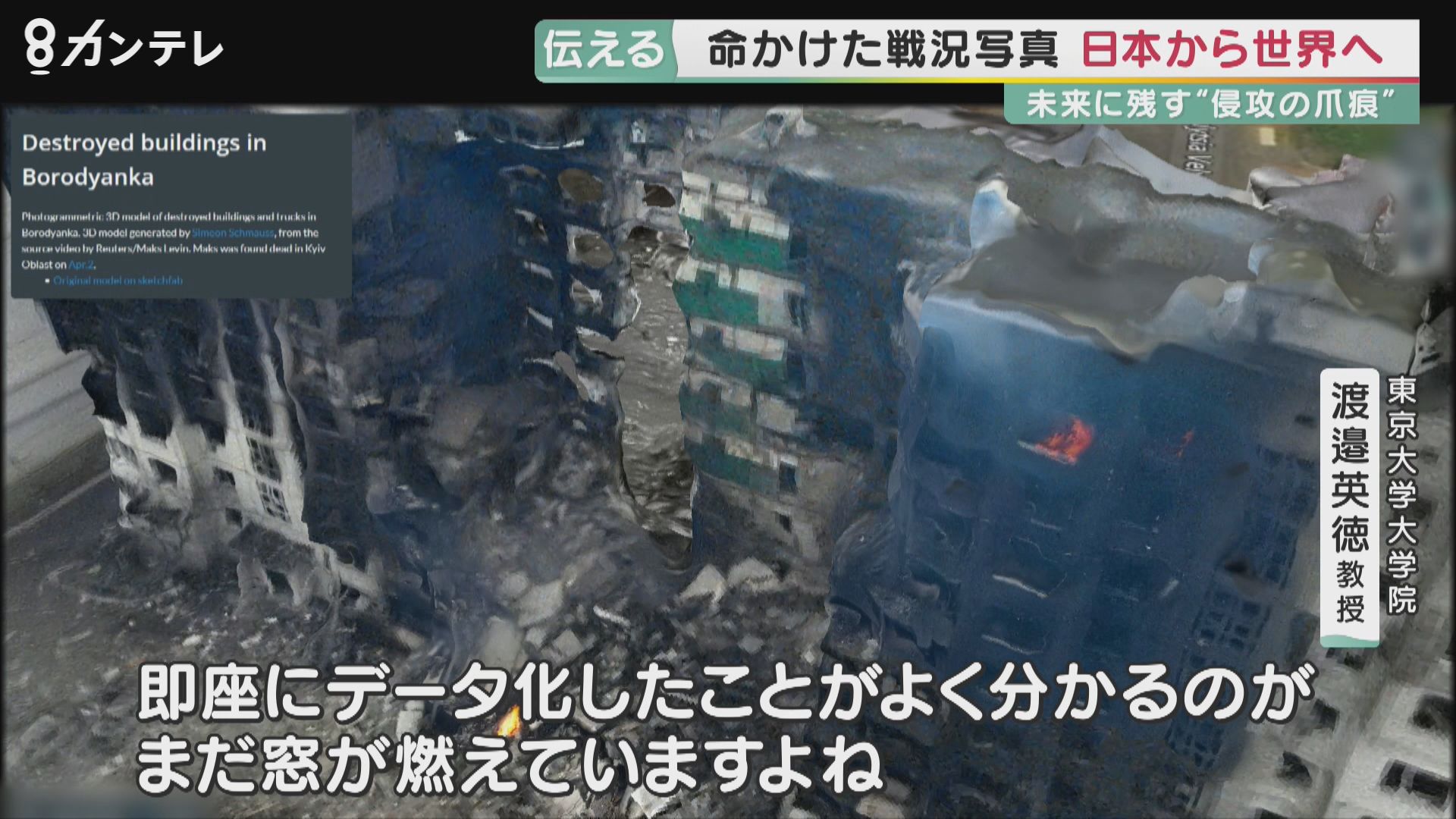 中には写真を撮影しその後、命を落としたウクライナの写真家もいました。その写真家、マックス・レビンさんがドローンで撮影した映像をもとにつくられた3Dでは、窓が燃えている建物の様子がはっきりと分かります。