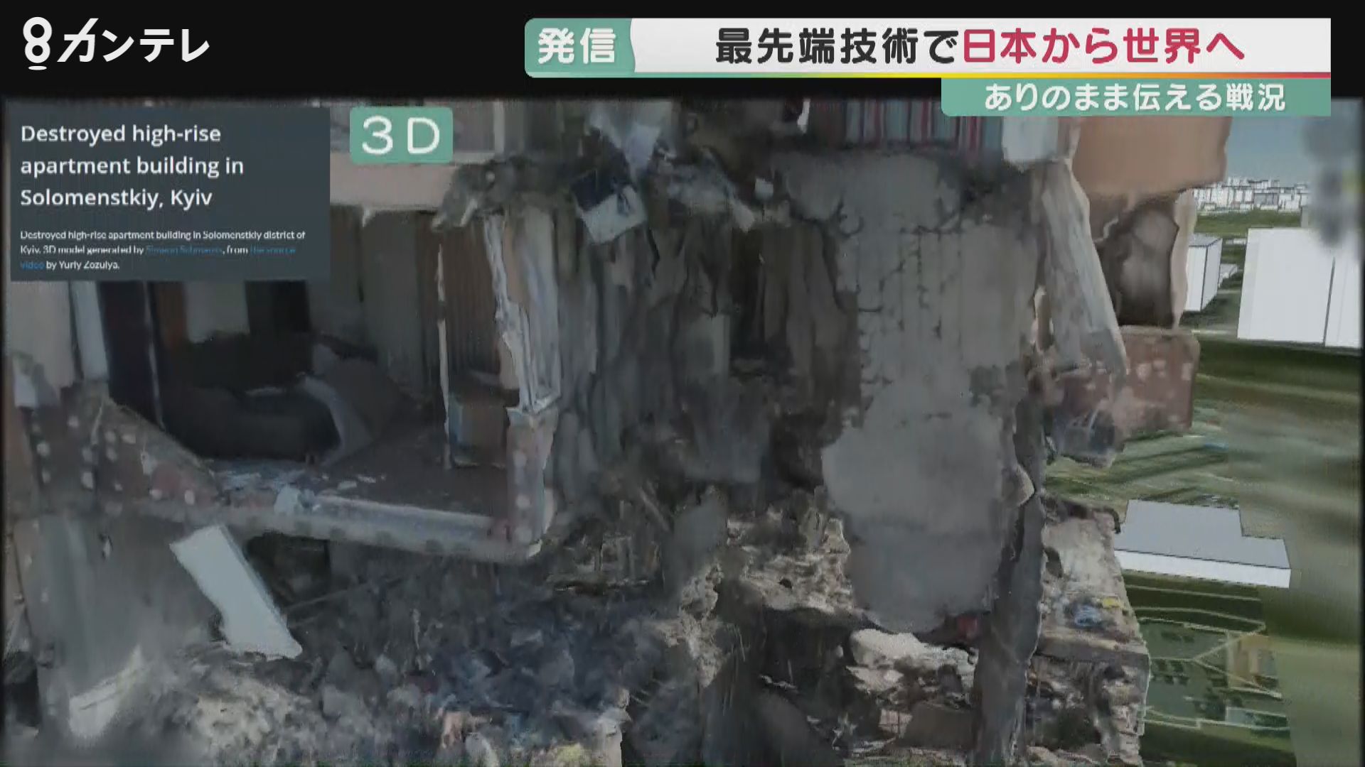 ロシアの軍事侵攻が始まって2日後に爆撃されたキーウの高層マンション。この被害の様子も3Dで立体化されデータとして残されました。