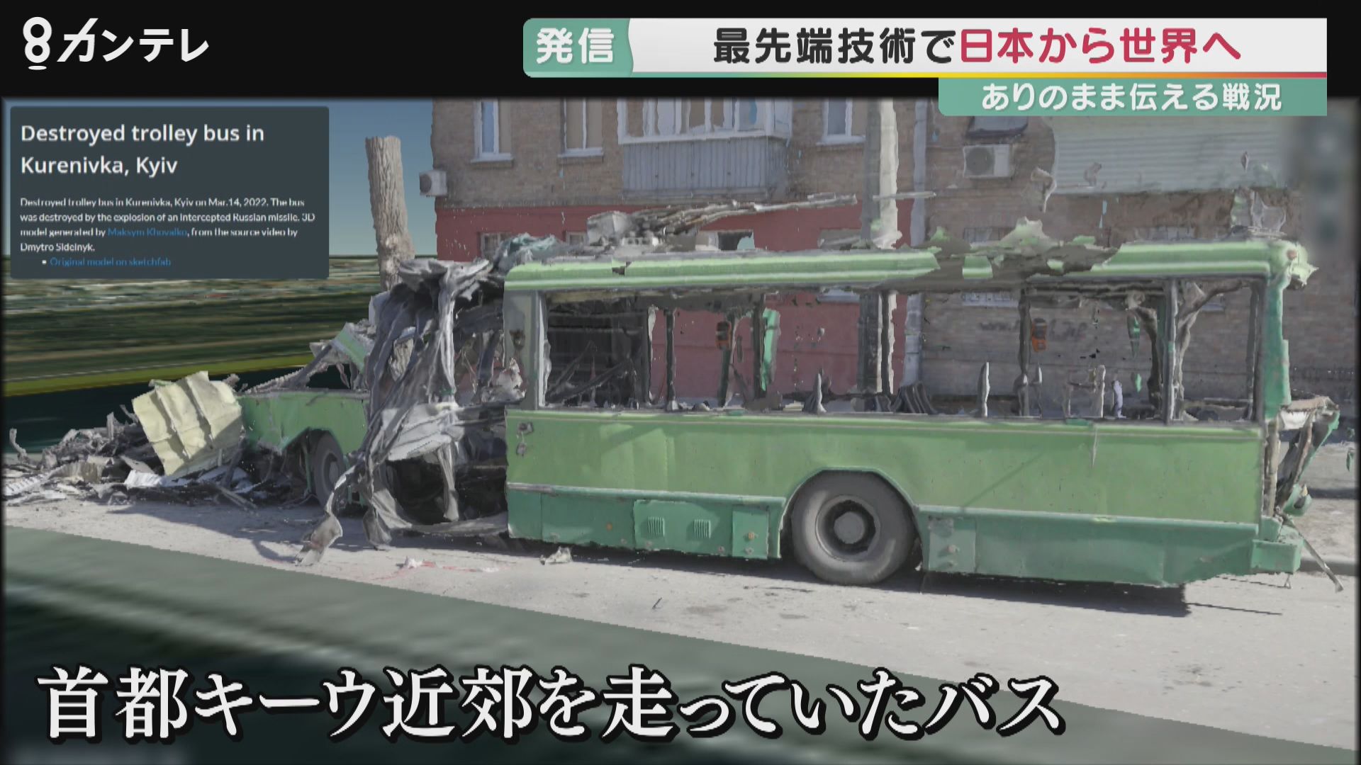 ウクライナの首都・キーウ近郊を走っていたバス。迎撃したロシア軍のミサイルの破片が直撃しました。