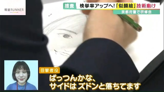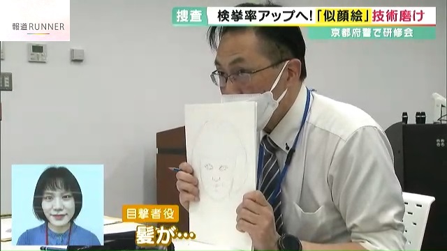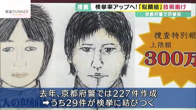 似顔絵は、警察官が事件の目撃者から犯人の特徴を聞いて描くもので、去年、京都府警では227の事件で作成されました。
