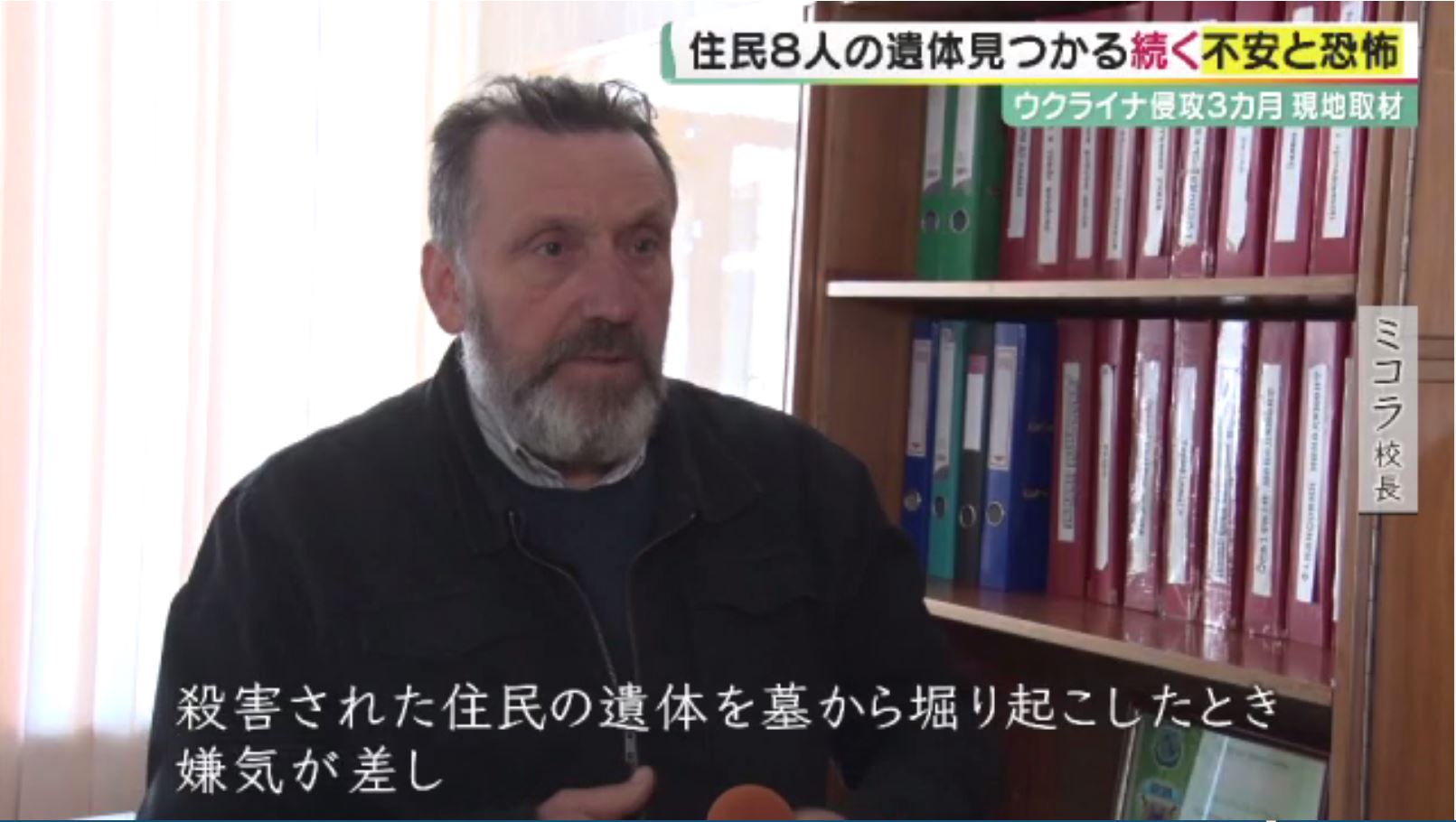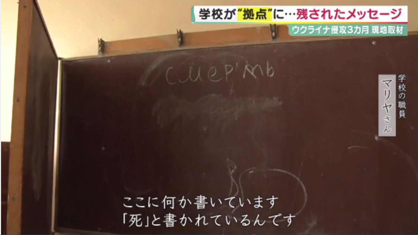 「黒板に何か書いています。『死』と書かれているんです。色々散らかしたのは彼ら(ロシア兵)ですよ。捕らえられたウクライナの捕虜は拷問されていました」