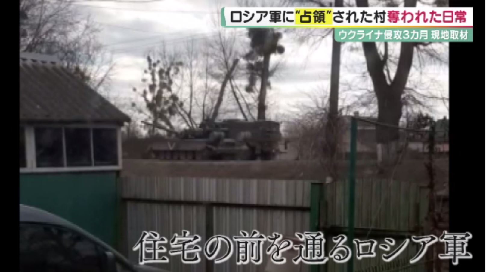 軍事侵攻が始まった翌日に住民が撮影した映像には、住宅の前を通るロシア軍の姿。