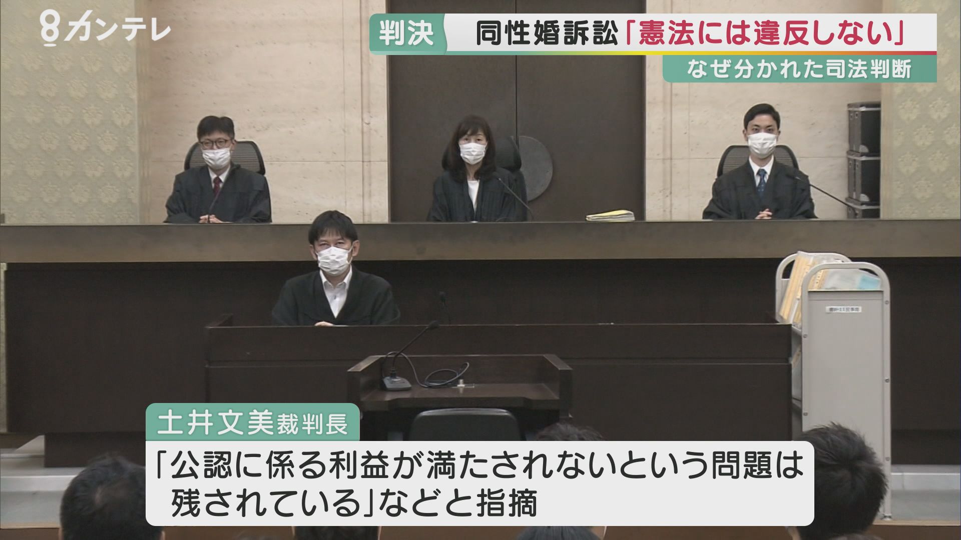 全国5カ所で起きている同様の集団訴訟のうち、札幌地裁が去年3月に言い渡した判決では、法の下の平等を定めた憲法に違反すると判断を示していて、同性婚を巡る司法の判断が分かれる形になりました。