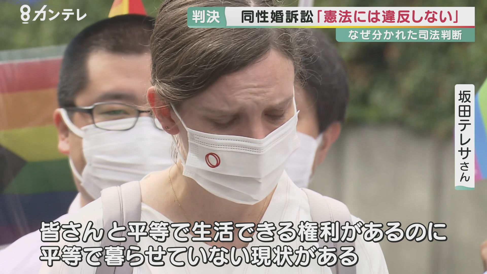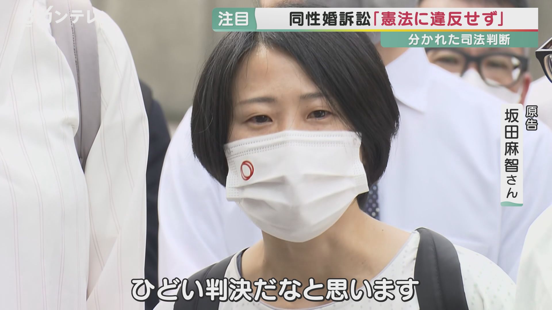 判決を受け、原告の坂田麻智さんは「ひどい判決だなと思います。自分たちが変えられない性的指向で差別的な取り扱いを受けていること、これを合憲とした。非常に憤りを感じていますし残念でならない」と語りました。
