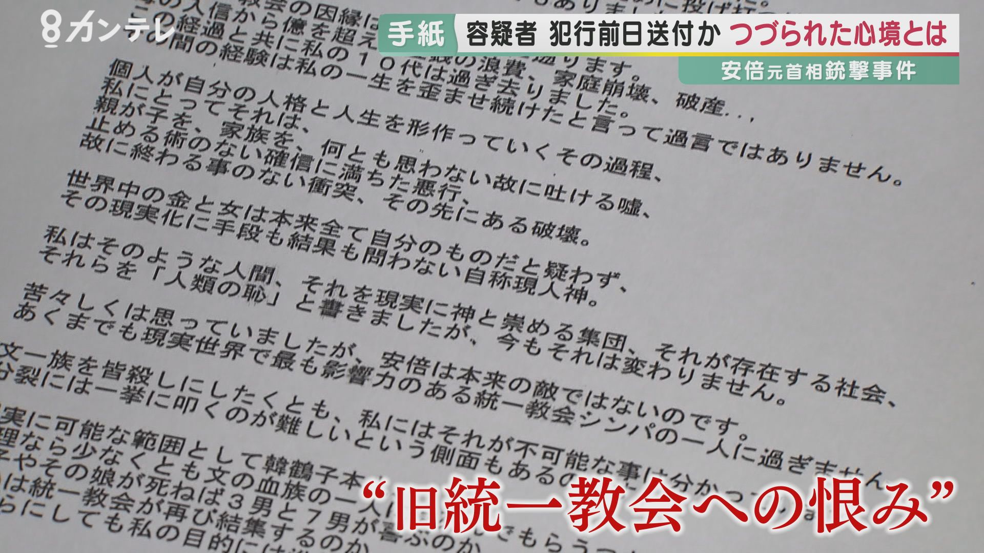 手紙には旧統一教会への恨みから犯行を決意したかのような内容も書かれていました。