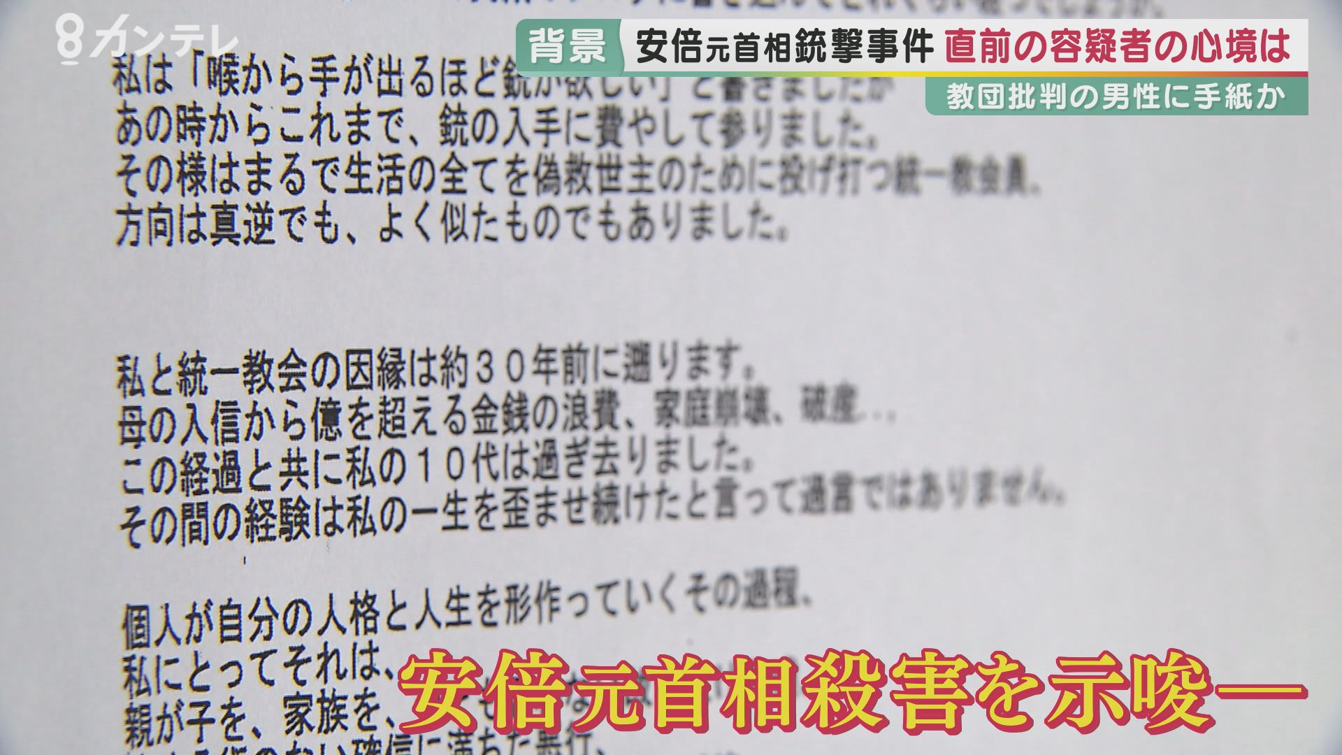 安倍元総理大臣が銃撃され死亡した事件で、逮捕された山上容疑者は、犯行直前に心境などを綴った手紙を送っていたとみられます。凶行に至った背景に迫ります。