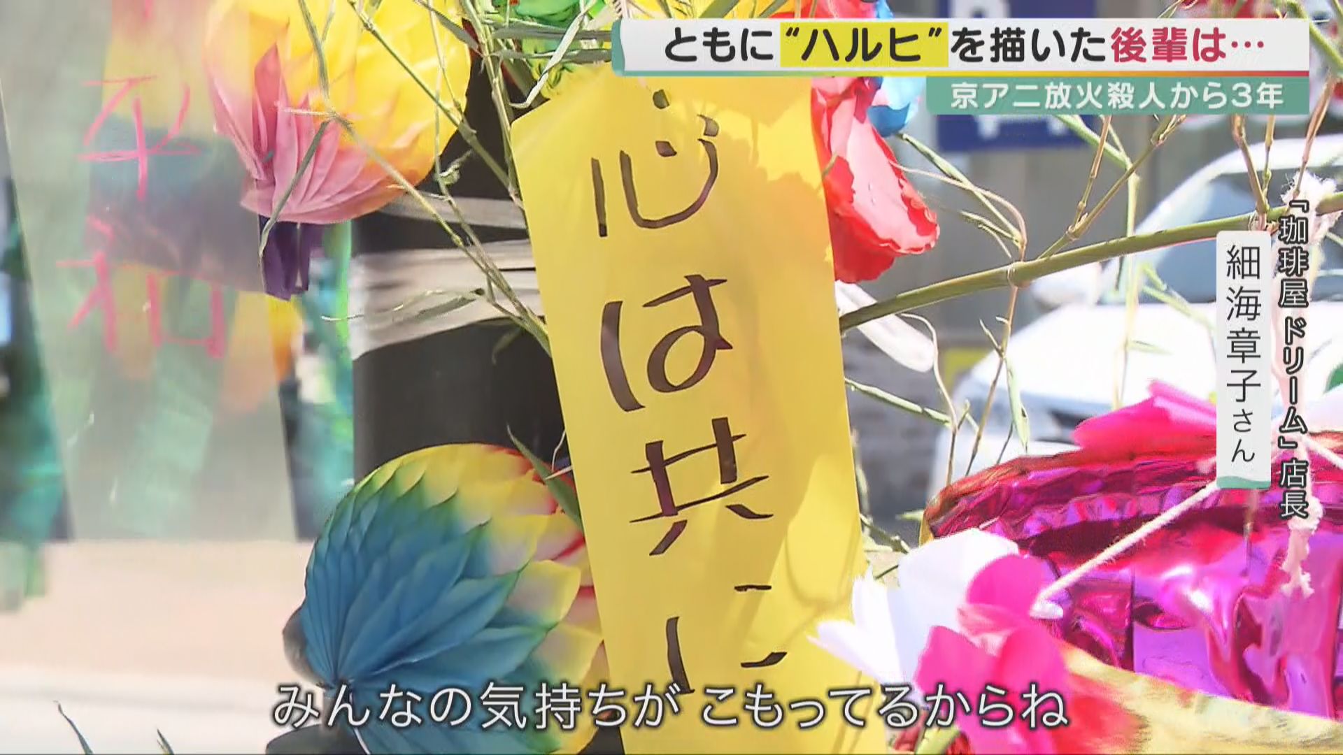 3年前の7月18日、京都アニメーション第一スタジオがガソリンで放火され、36人が死亡、32人が重軽傷を負うという痛ましい事件が起こりました。