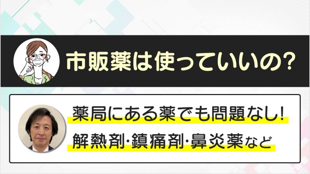 A:薬局にある薬でも問題なし。解熱剤・鎮痛剤・鼻炎薬など