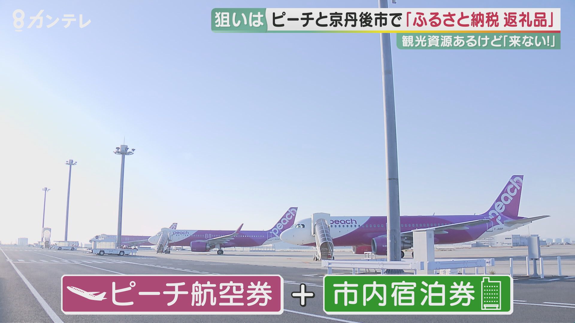 返礼品は関西空港に到着するピーチの航空券と、京丹後市内での宿泊券がセットになったもので、8月中をめどに出品します。