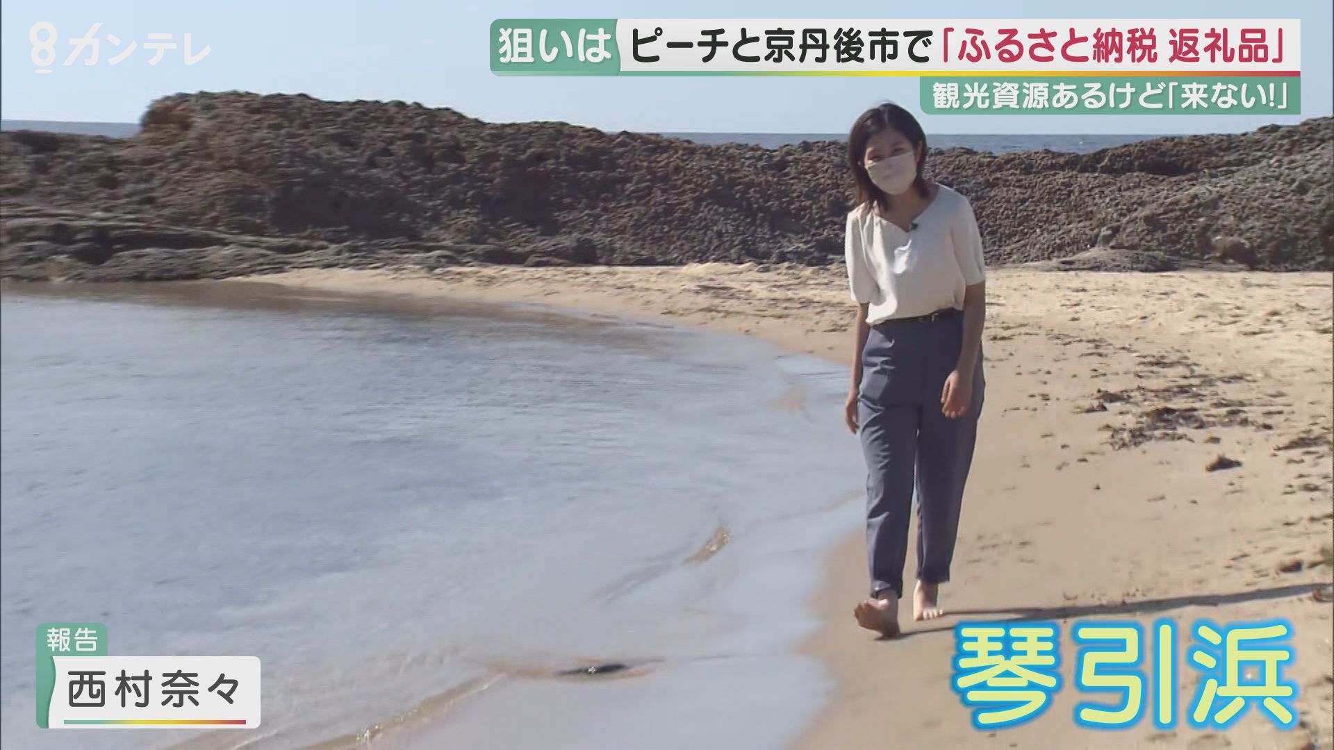 「京丹後市の琴引浜にやってきました。関西屈指の海水浴場なんですが、水が透き通っていてとてもきれいです」