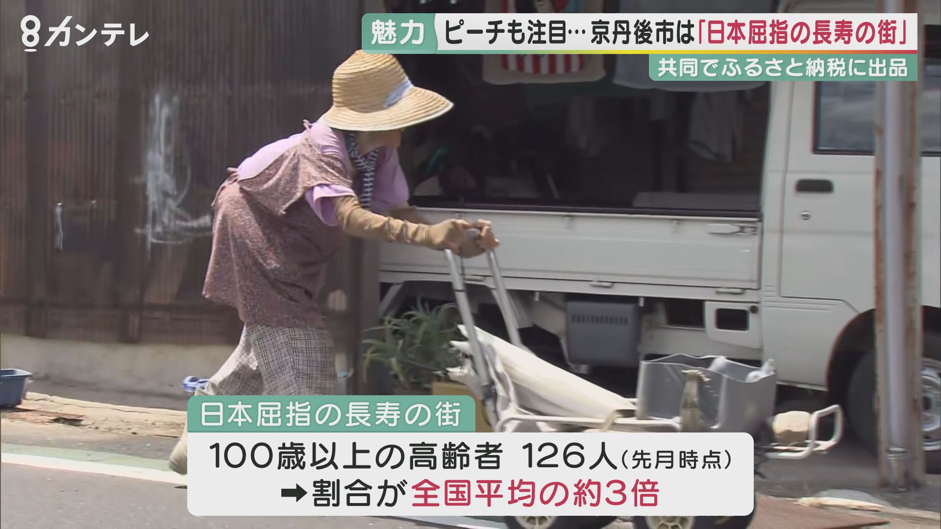 その一方で、京丹後市は日本屈指の長寿の街としても知られ、100歳以上の高齢者は126人と、人口の割合で全国平均のおよそ3倍にも上ります。