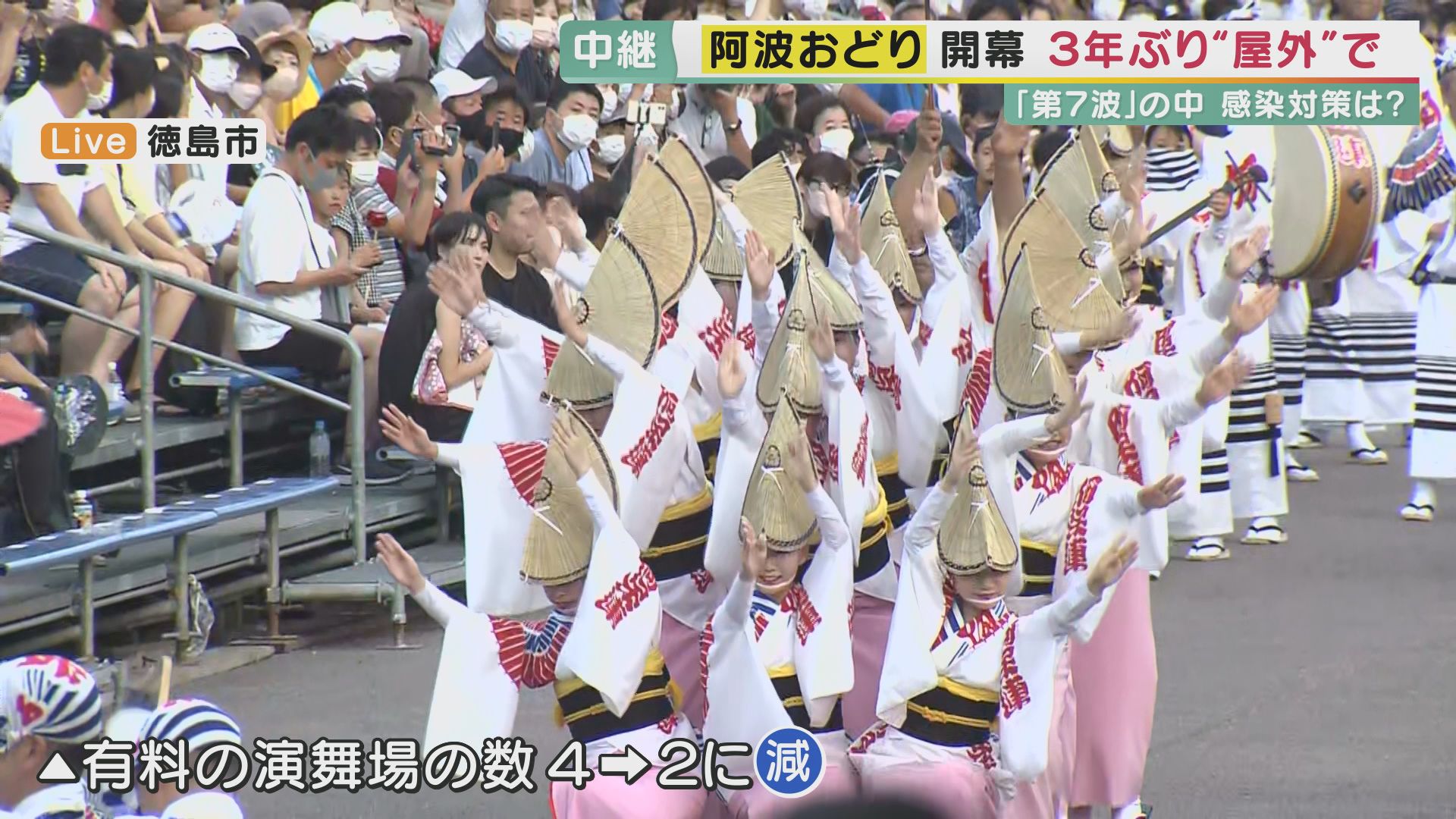 3年ぶり屋外で開幕「阿波おどり」 熱気に包まれる演舞場 男踊りと女踊り 「踊らにゃソンソン」 8月15日まで