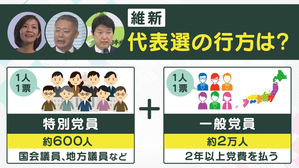 「カギを握るのは“大阪票”です。約2万人の一般党員のうち、実は約1万2000人が大阪在住の方なんです。さらにほとんどの方が、大阪府議や市議など議員の紹介で党員になっていて、議員にひもづいているんです。大阪府議の一部の方は、東議員を応援していたわけです。ということは、東議員を応援していた大阪府議にひもづく一般党員票は“浮いて”いますよね。この票を、立候補している足立議員、馬場議員、梅村議員の3陣営が奪い合うということになります」