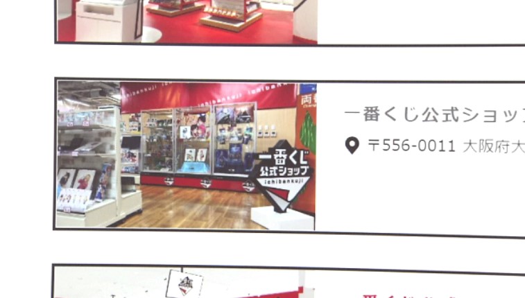 公式ショップを運営するバンダイナムコアミューズメントによると、大阪日本橋店では数年前から、一部の商品で、特定の賞が引かれたあと、残ったくじ券を新しいくじ券セットの中に混ぜて販売し、本来渡すべきだったラストワン賞を提供していなかったということです。
