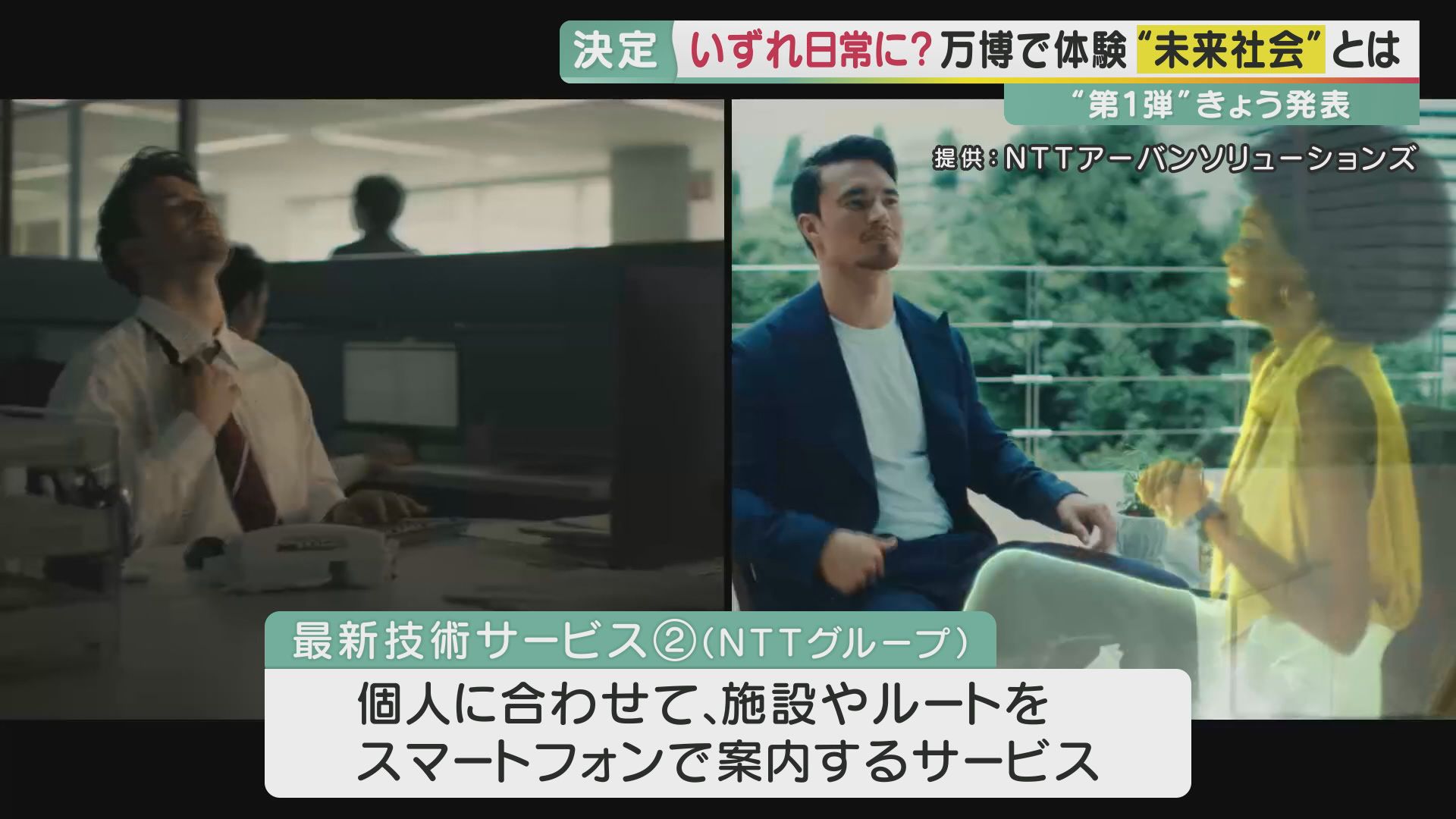 NTTグループは仮想空間上に万博会場を再現し、世界中の人が遠隔で集まることができる「バーチャル万博」を整備します。さらに、ひとりひとりに合わせて、施設やルートをスマートフォンで案内するサービスも展開します。