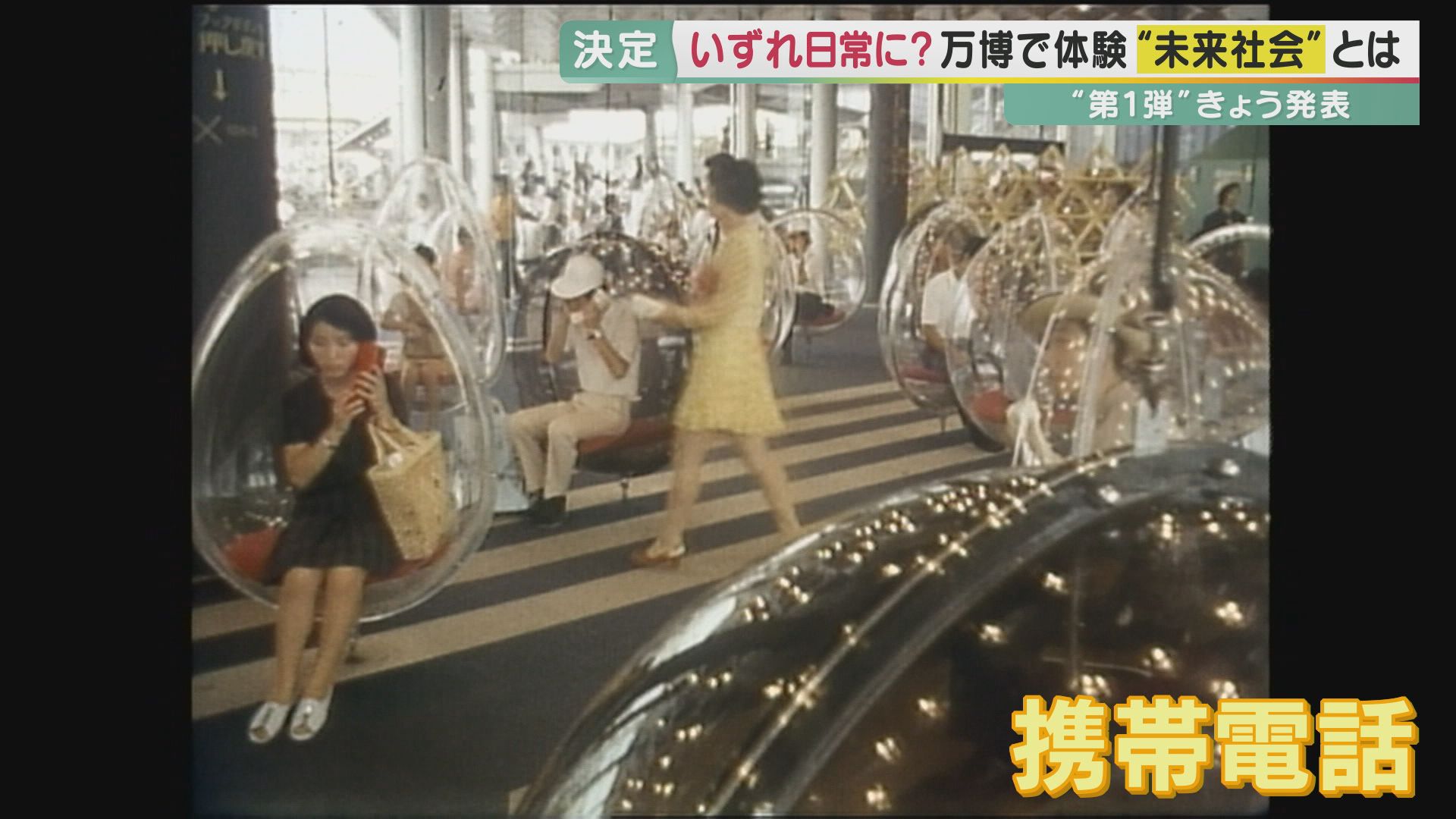当時の日本の最先端技術が披露された1970年の大阪万博には、半年間で6400万人以上の人が訪れました。「夢の電話」と呼ばれた携帯電話や動く歩道も、52年たった今では日常生活の一部となっています。