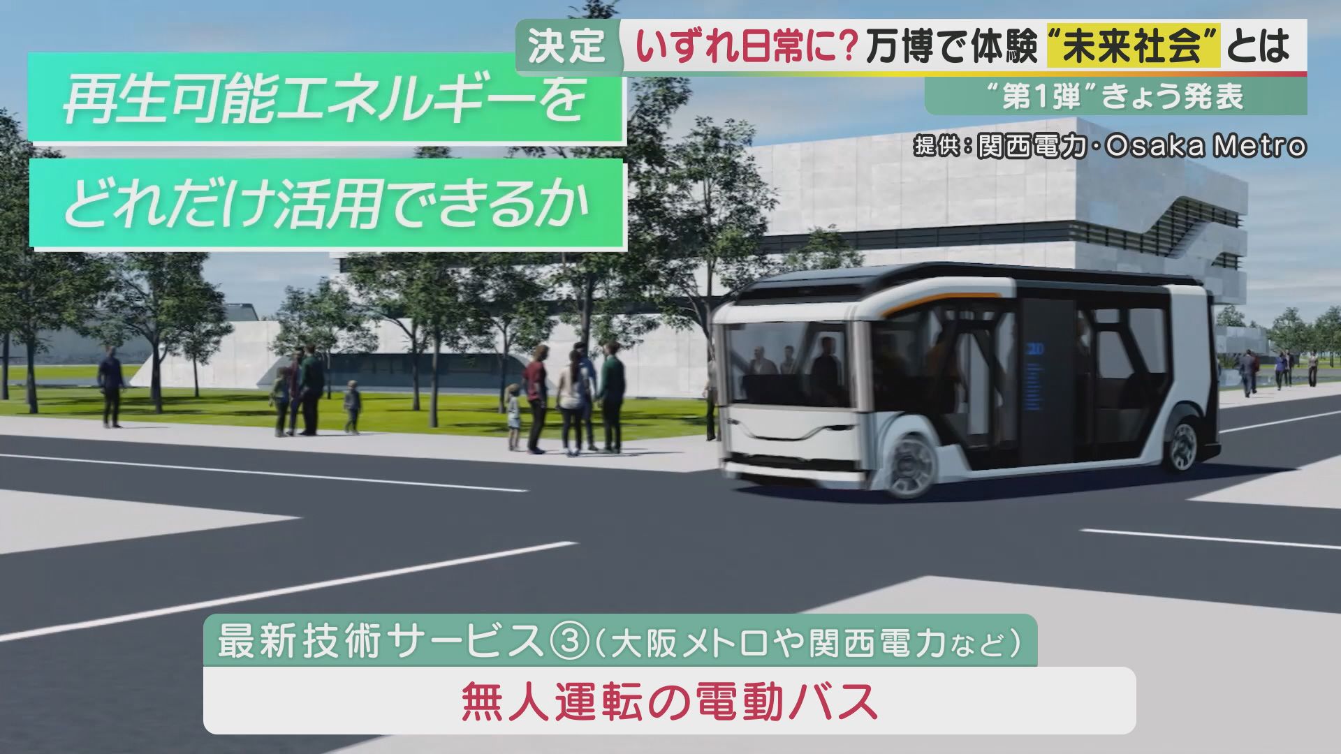 “最先端技術”のサービスを万博で提供 「走りながら給電」できる自動運転バスなど NTTや関西電力などが事業内容を発表 万博で見える未来社会とは 大阪・関西万博「未来社会ショーケース事業出展」発表会 2022年09月07日
