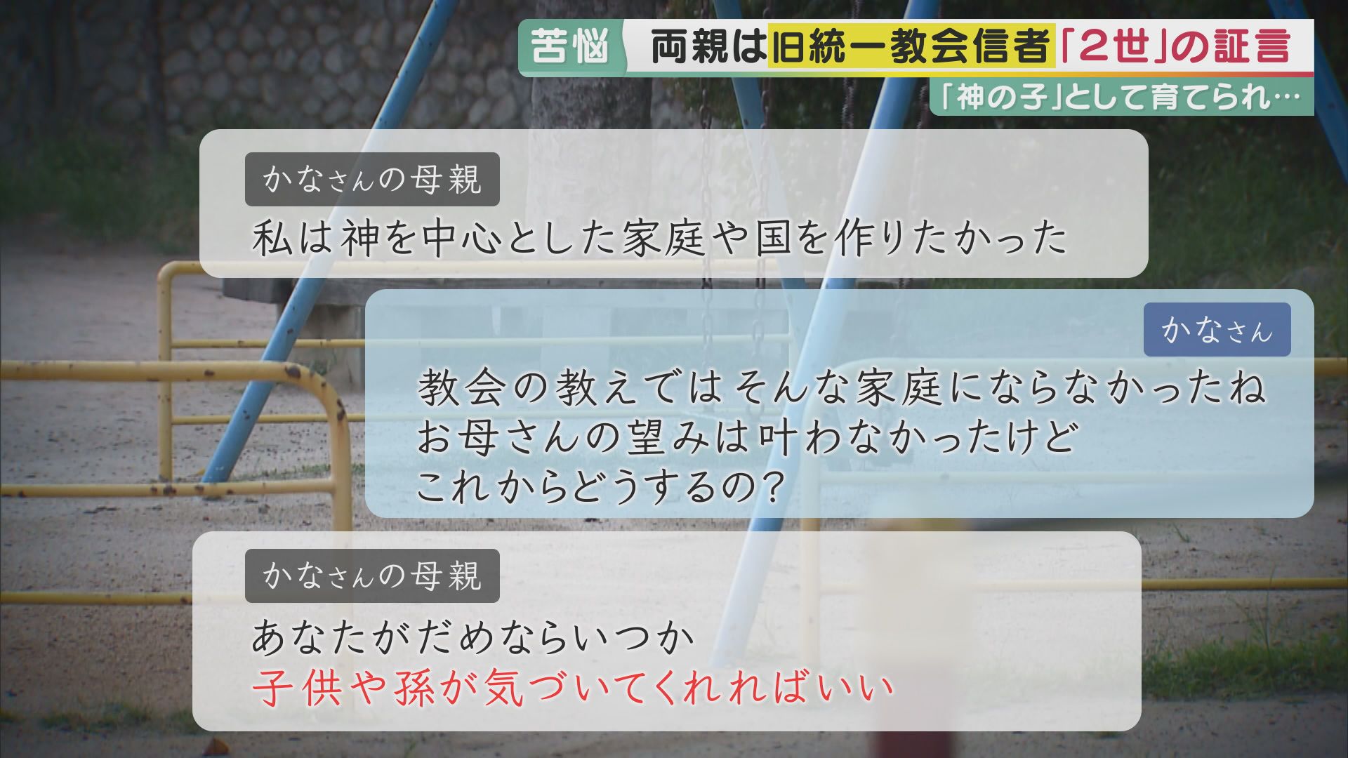 かなさんは大学進学をきっかけに親元を離れてから、教会の教えに対する違和感が確信に変わり、自由に恋愛をするようになりました。安倍元首相の銃撃事件後、母親にどんな思いで教会を信仰しているのか聞くと…